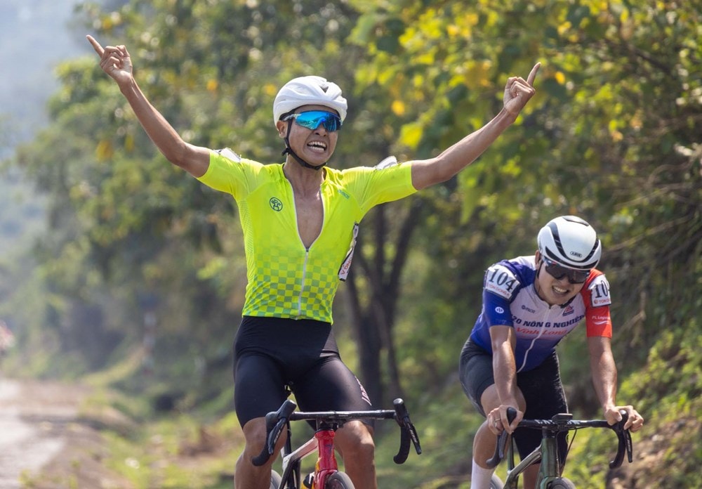 Ở điểm rút dọc đường đầu tiên, Lê Hải Đăng (đội Đồng Tháp 1) tận dụng tốt cơ hội để cán đích đầu tiên.