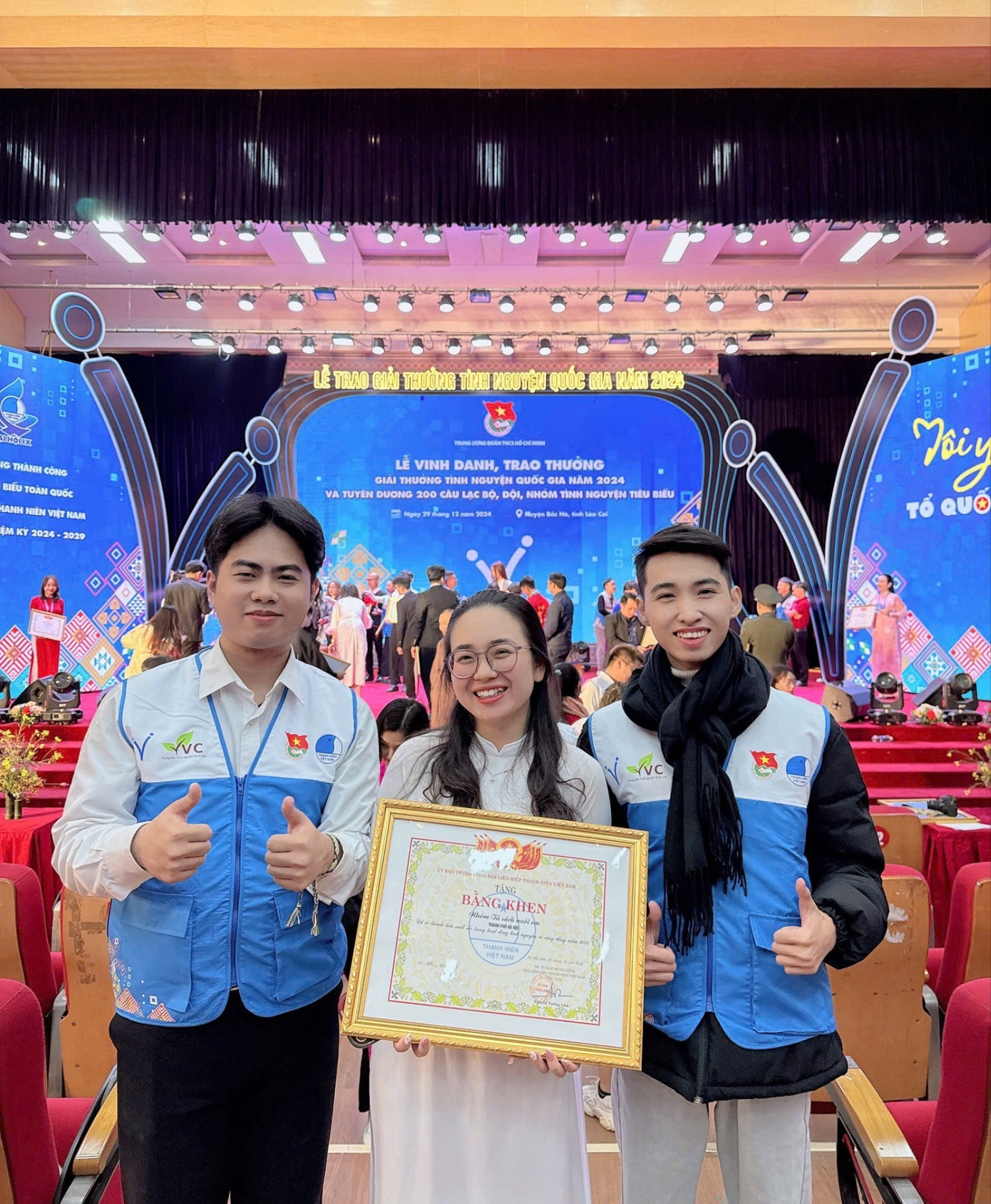 Tủ Sách Nuôi Em tại Giải thưởng Tình nguyện Quốc gia - Văn Phú đứng đầu tiên từ phải sang.