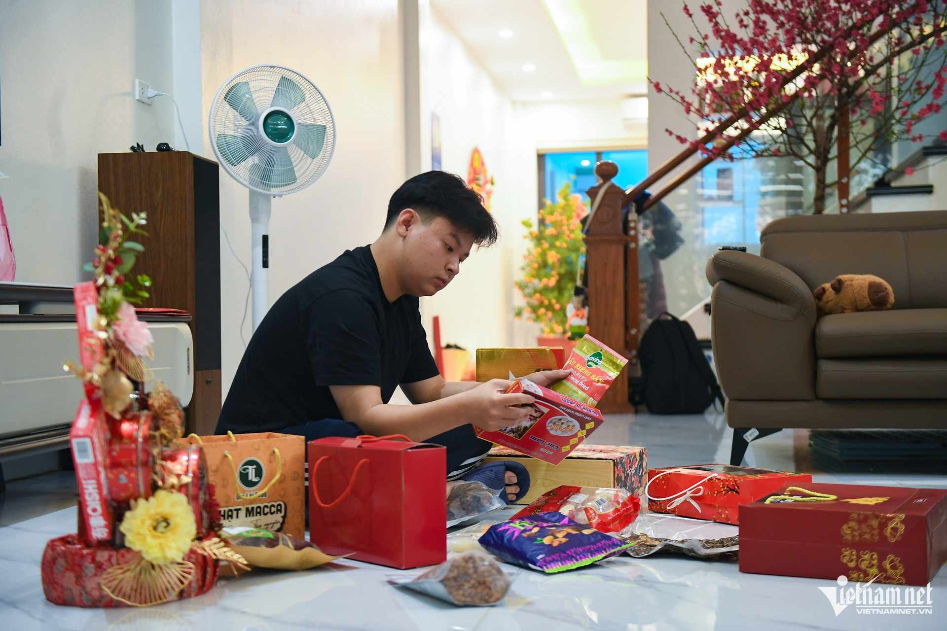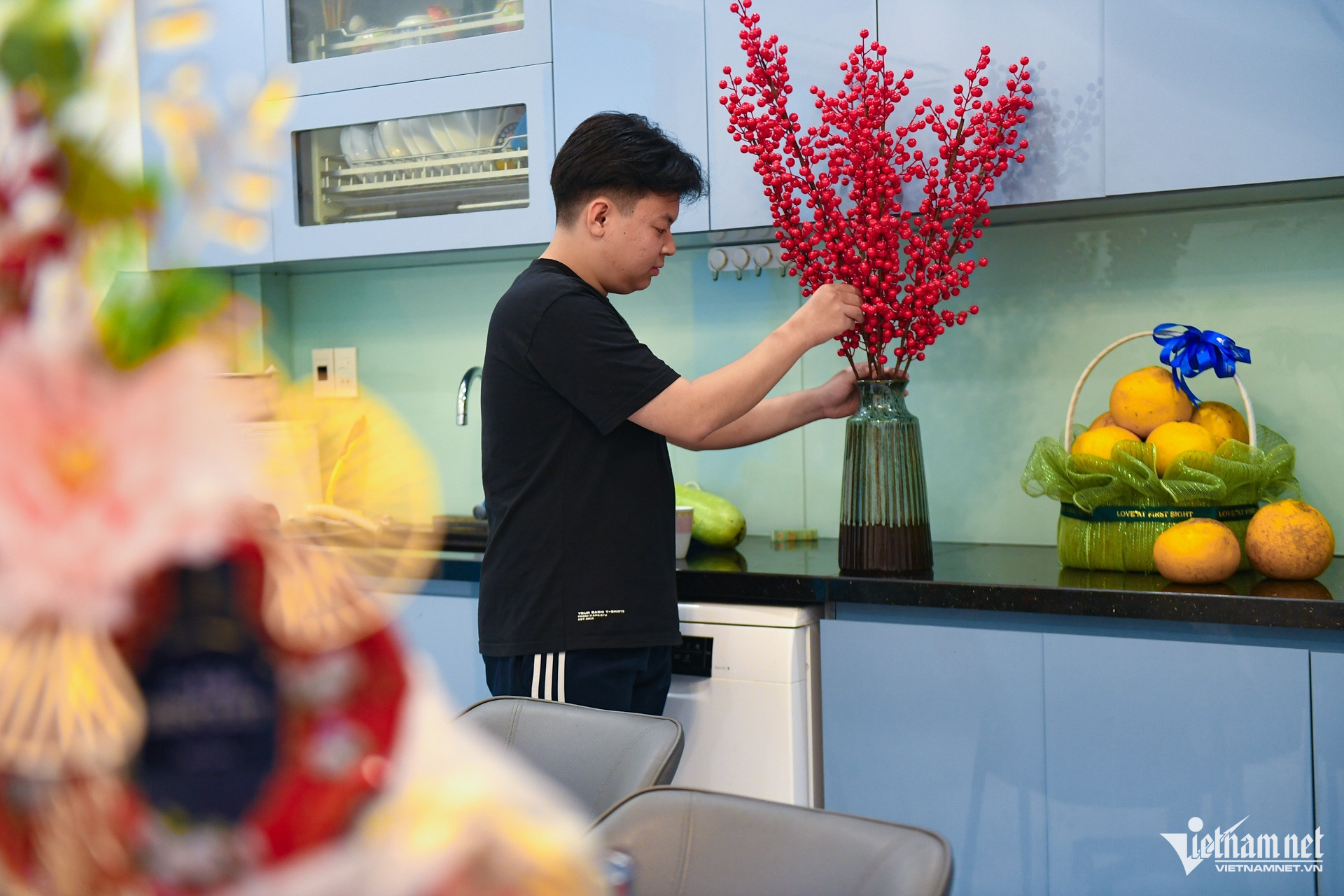 Tùng cho biết, từ khi còn là một cậu bé 15-16 tuổi, mỗi lần bố mẹ cúng lễ, Tùng đều có mặt bên cạnh để quan sát và học hỏi. Dần dần, chàng trai cũng thạo việc. Lịch nghỉ Tết bắt đầu từ khá sớm, cứ mỗi ngày cậu mua sắm một ít, dọn dẹp thêm phòng này phòng kia. Đến 27 Tết thì hoàn tất trang trí nhà cửa.