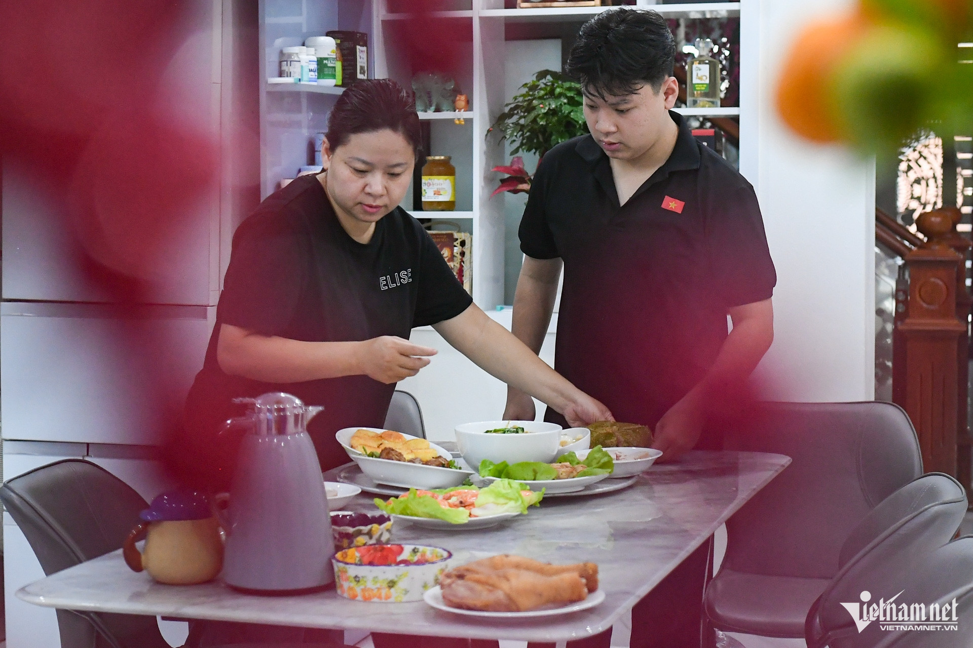 Sáng 29 tháng Chạp, Tùng dậy từ 7h, xuống bếp chuẩn bị cơm cúng tất niên. Khoảng 1 tiếng sau, bà Mai Hương - mẹ của Tùng - cũng xuống phụ giúp con trai.