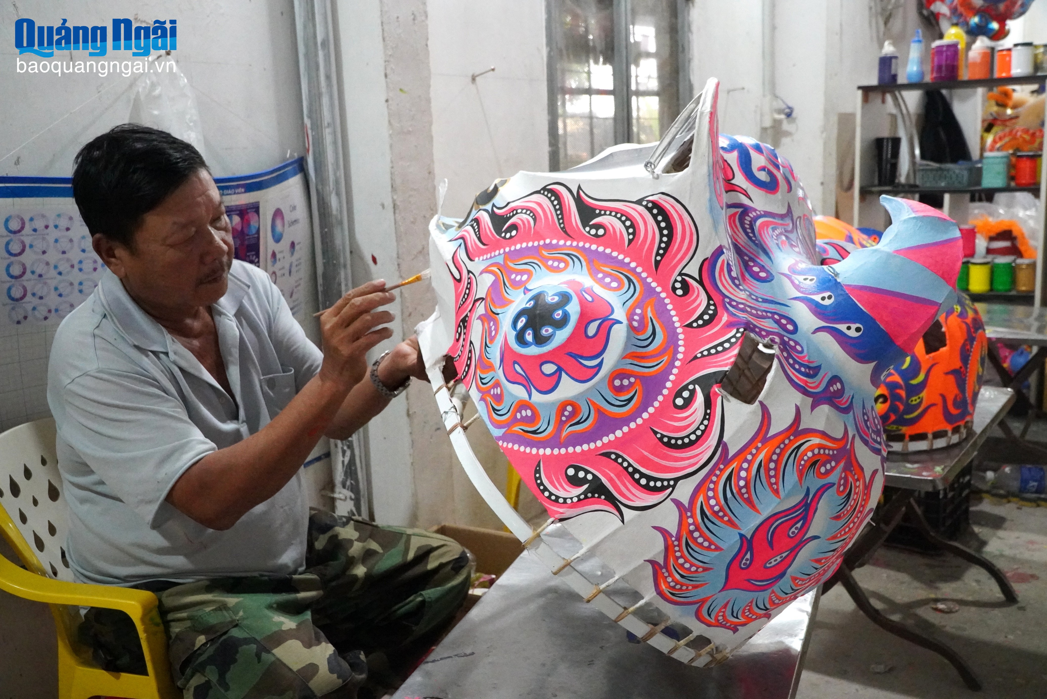 Là một trong những người thợ gắn bó lâu năm tại cơ sở, chú Bùi Minh Hưng (52 tuổi), phường Kon Tum cho biết, tôi đã làm việc ở đây khoảng 7 năm, đảm nhận công đoạn tạo khung sườn cho lân. Thu nhập ổn định gần 7 triệu đồng mỗi tháng, công việc khá nhẹ nhàng, phù hợp với người lớn tuổi như tôi.