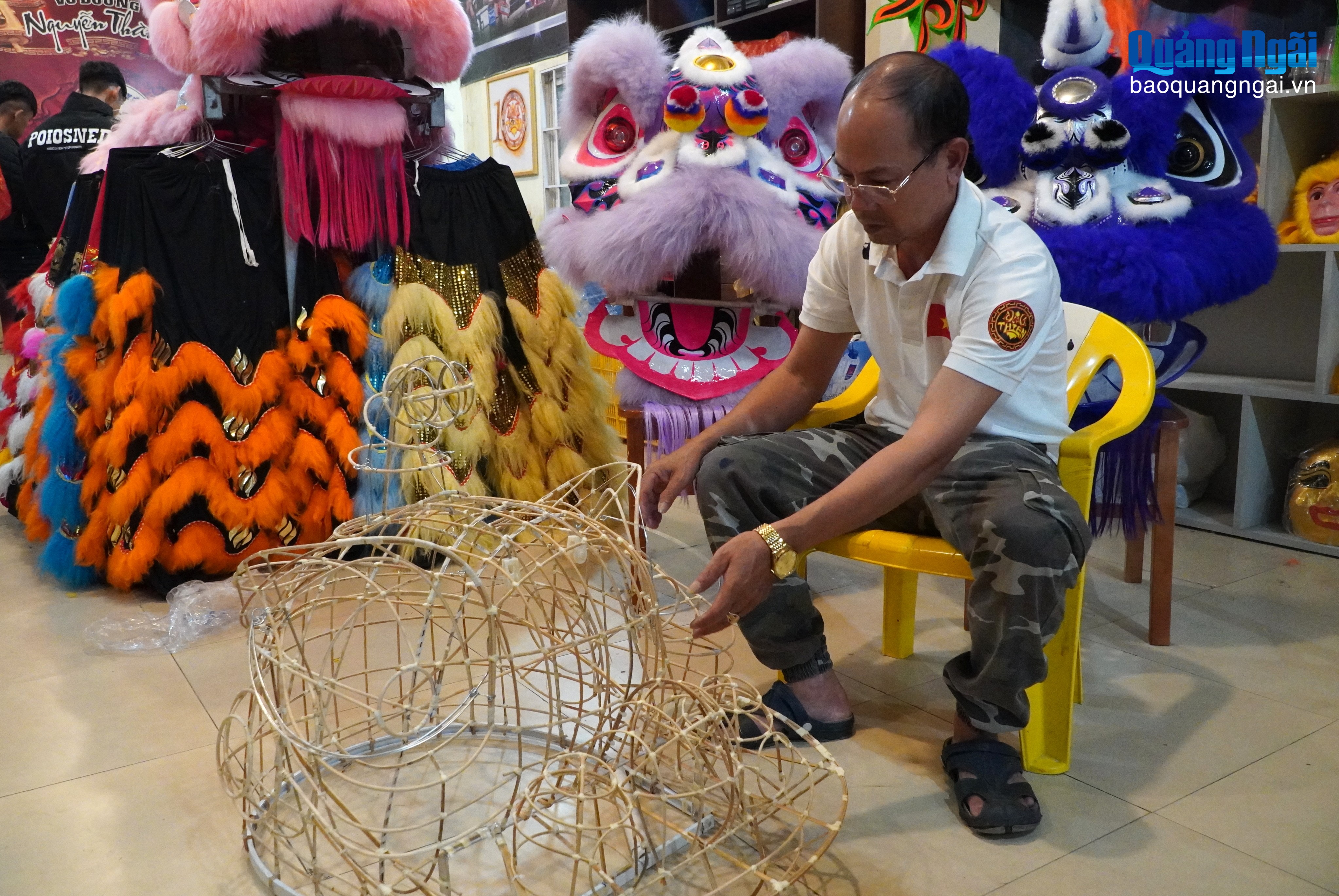 Chú Bùi Minh Hưng gắn bó với công việc tạo khung sườn cho lân 7 năm nay.