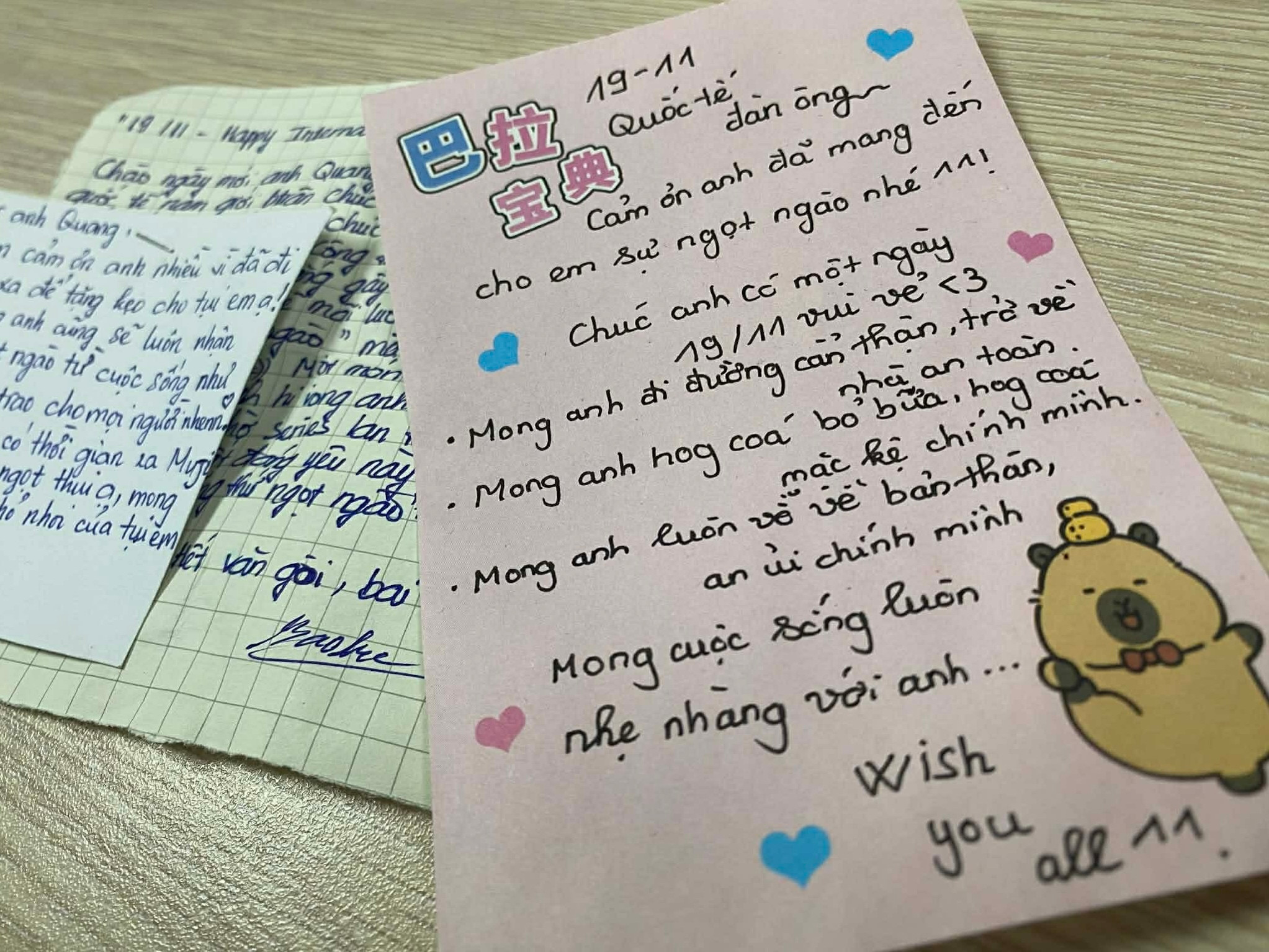 Kỷ niệm khiến Quang nhớ nhất trong hành trình hơn 2 tháng chia sẻ sự ngọt ngào là vào ngày 19/11, anh lần đầu nhận được nhiều thư tay nhân Ngày Quốc tế Đàn ông. Trong thư viết những lời chia sẻ coi hành trình ngọt ngào như nguồn động lực tinh thần làm Quang xúc động và lưu giữ đến hiện tại.