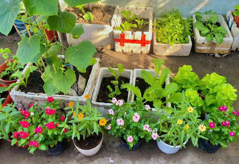 Tú phải đi mua từng bao đất về, trộn với phân mục rồi chia ra thùng xốp, chai nhựa. Dẫu vất vả, anh vẫn không tiếc thời gian, công sức.