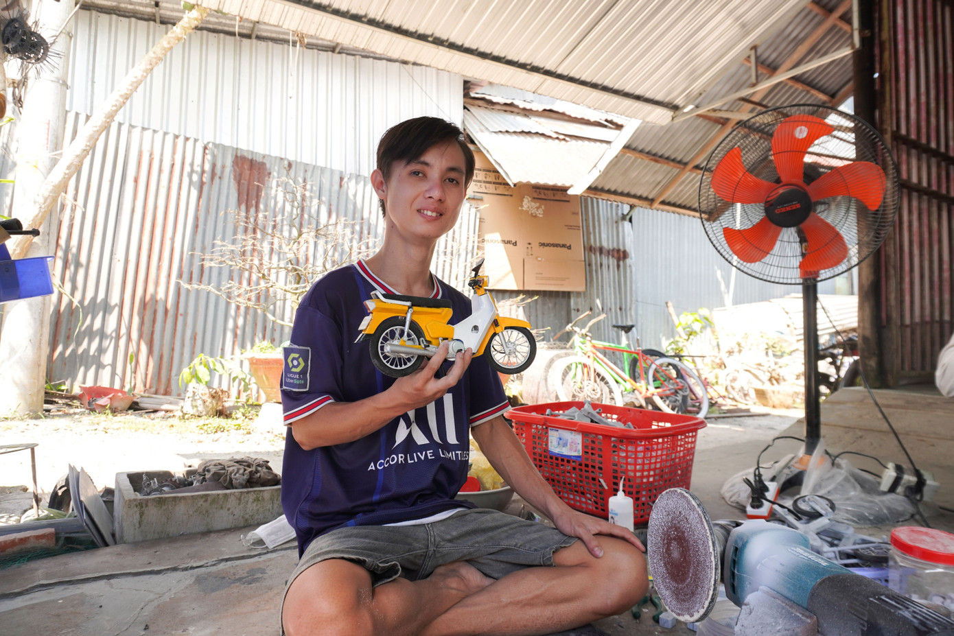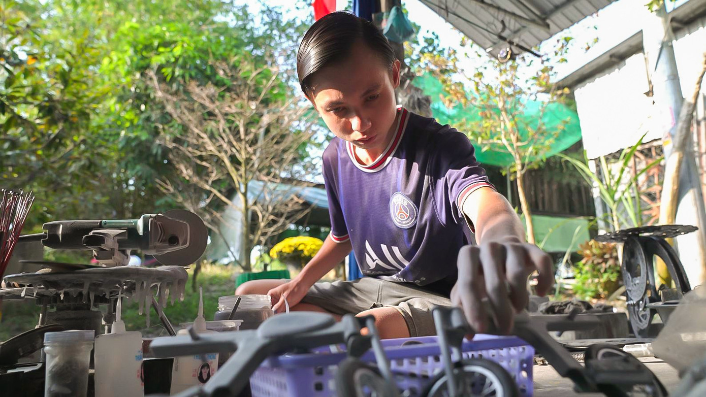Mình vốn cực kỳ nhạy cảm với nhịp đập của máy móc. Mình có thể ngồi hàng giờ chỉ để quan sát từng con ốc vít hay bộ khung xe đạp. Tiệm phế liệu đã trở thành "xưởng sáng tạo" của mình. Nơi những ống nhựa, mẩu gỗ hay dây kẽm được mình nhặt nhạnh về để "thổi hồn". Từ đó, mô hình của những chiếc Honda 67, Cup 50 hay mô tô phân khối lớn dần hình thành với độ chính xác cao, bánh xe và hệ thống đèn có thể chuyển động như thật.