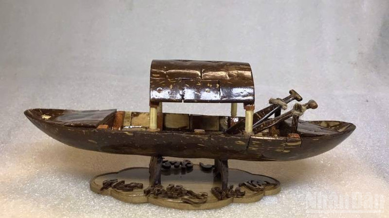 Chiếc xuồng con lắp ghép từ những mảnh gáo dừa.