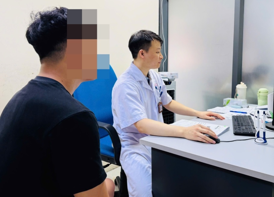Bác sĩ Mai Văn Lực, khoa Ngoại Tiết niệu - Nam học, xác định bệnh nhân đang trải qua một cơn đau quặn thận cấp.