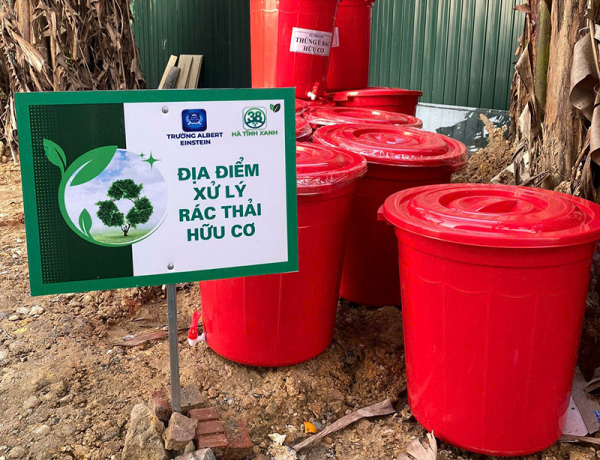 Một điểm xử lý rác hữu cơ mà trung úy Phạm Minh Hiếu hướng dẫn người dân thực hiện.