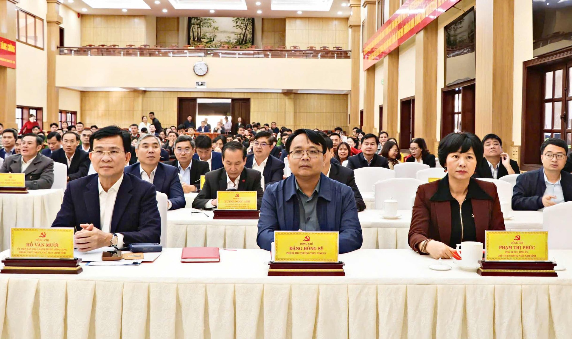 Các đồng chí: Hồ Văn Mười, Ủy viên Ban Chấp hành Trung ương Đảng, Phó Bí thư Tỉnh ủy, Chủ tịch UBND tỉnh; Đặng Hồng Sỹ, Phó Bí thư Thường trực Tỉnh ủy; Phạm Thị Phúc, Phó Bí thư Tỉnh ủy, Chủ tịch Ủy ban MTTQ Việt Nam tỉnh tham dự chương trình