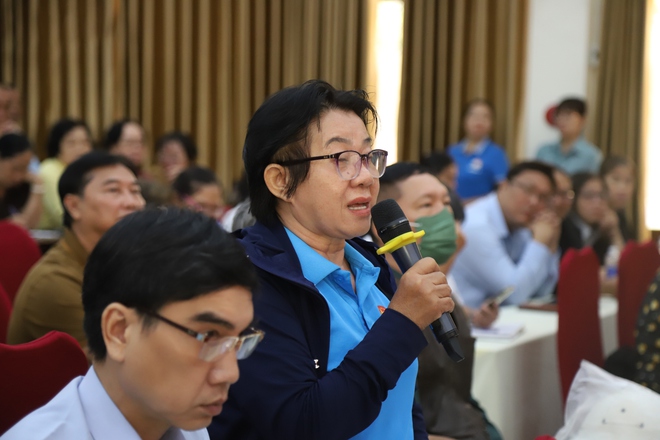 Cử tri Nguyễn Thị Tâm (Khu phố 49) kiến nghị thành phố xem xét, hỗ trợ tăng kinh phí để khu phố có điều kiện triển khai hiệu quả các nhiệm vụ sau khi thực hiện mô hình chính quyền địa phương 2 cấp.