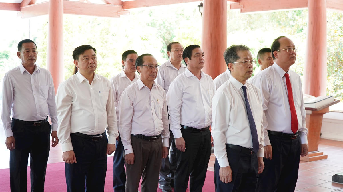 Chánh án TANDTC Nguyễn Văn Quảng và lãnh đạo tỉnh Cà Mau dâng hương tại Phủ thờ Bác Hồ (phường An Xuyên, tỉnh Cà Mau).