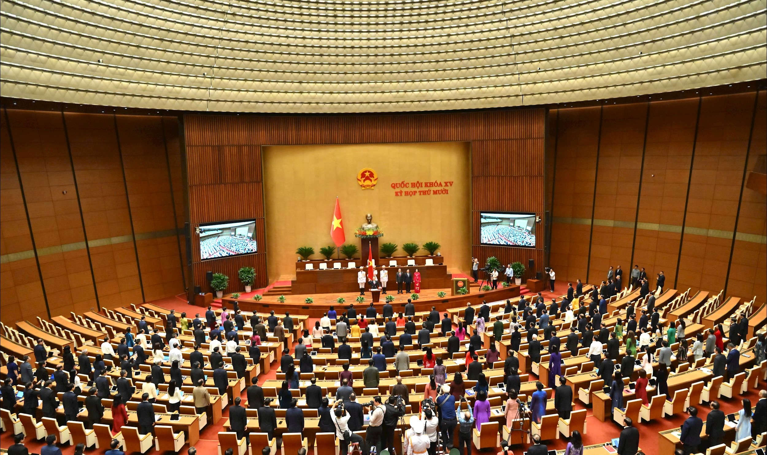 Dưới cờ đỏ sao vàng thiêng liêng của Tổ quốc, trước Quốc hội và đồng bào, cử tri cả nước, Chánh án Tòa án Nhân dân tối cao Nguyễn Văn Quảng tuyên thệ: “Tuyệt đối trung thành với Tổ quốc, với Nhân dân, với Hiến pháp nước CHXHCN Việt Nam. Nỗ lực phấn đấu hoàn thành tốt nhiệm vụ được Đảng, Nhà nước và Nhân dân giao phó”.