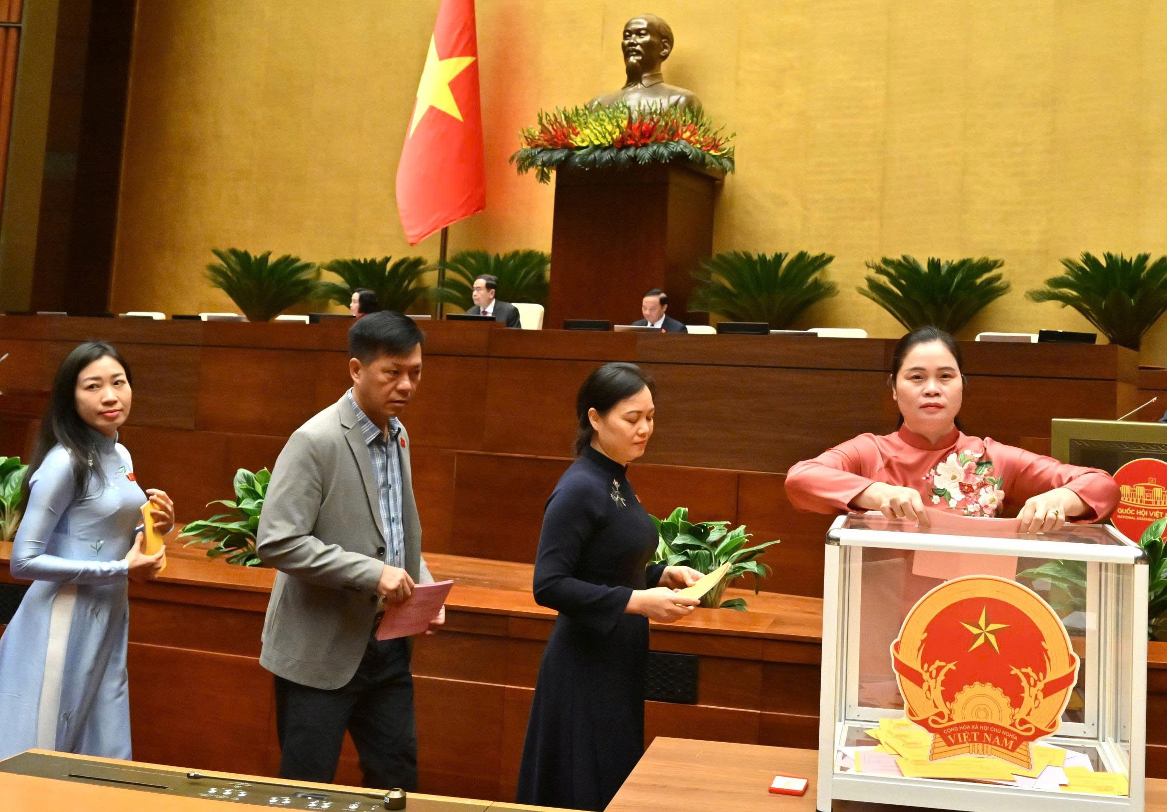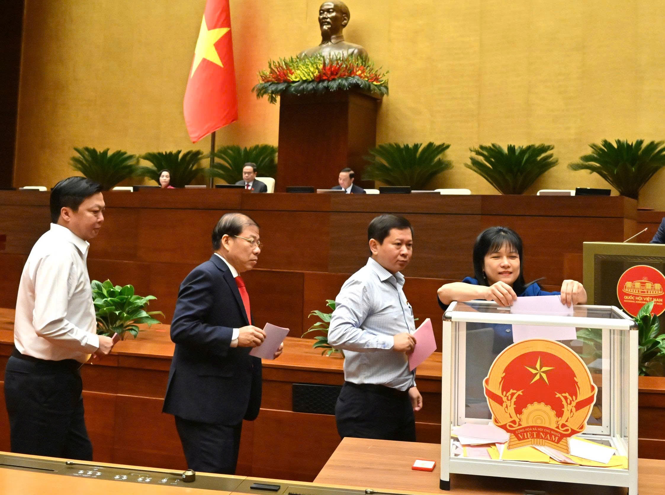 Tiếp đó, Quốc hội tiến hành biểu quyết thông qua dự thảo Nghị quyết bằng hình thức biểu quyết điện tử với kết quả 440/441 số đại biểu có mặt tán thành, bằng 92,83 % tổng số ĐBQH.