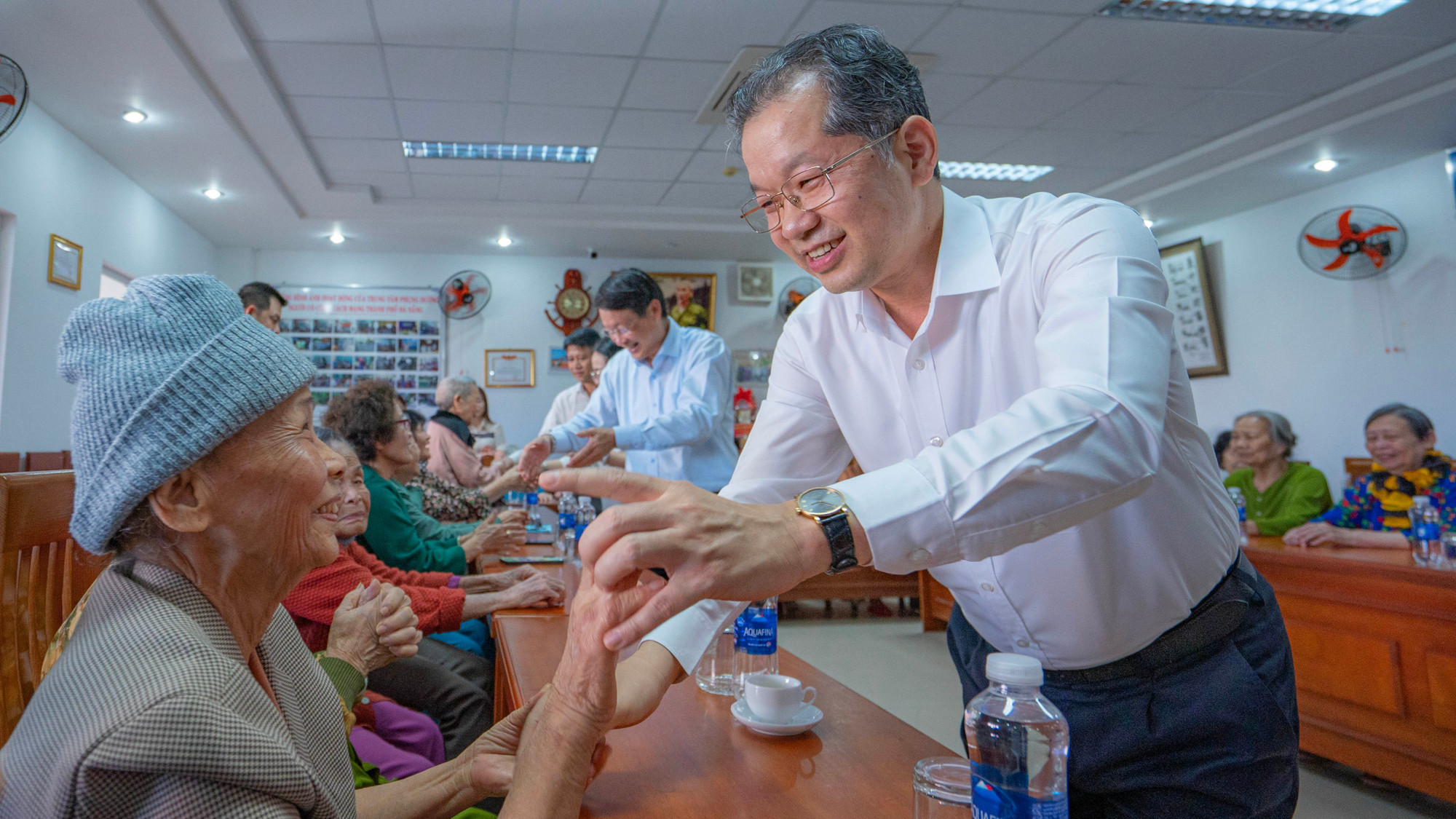 Đồng chí Nguyễn Văn Quảng chúc mừng năm mới các bậc lão thành đang được phụng dưỡng tại Trung tâm Phụng dưỡng người có công với cách mạng thành phố Đà Nẵng.