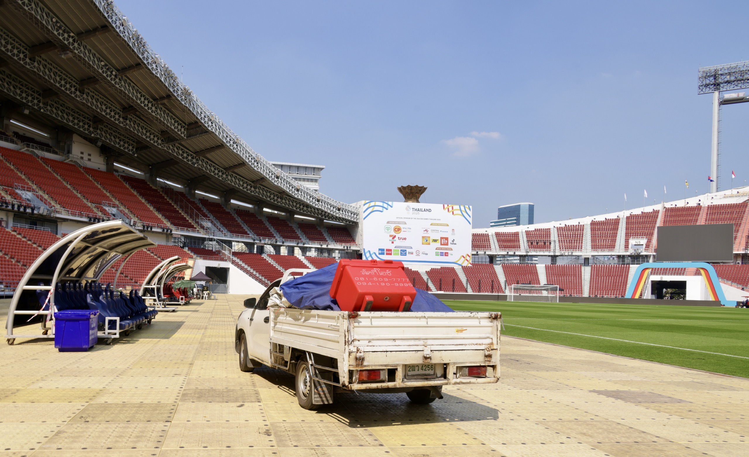 Công tác chuẩn bị trên sân Rajamangala. ẢNH: DŨNG PHƯƠNG