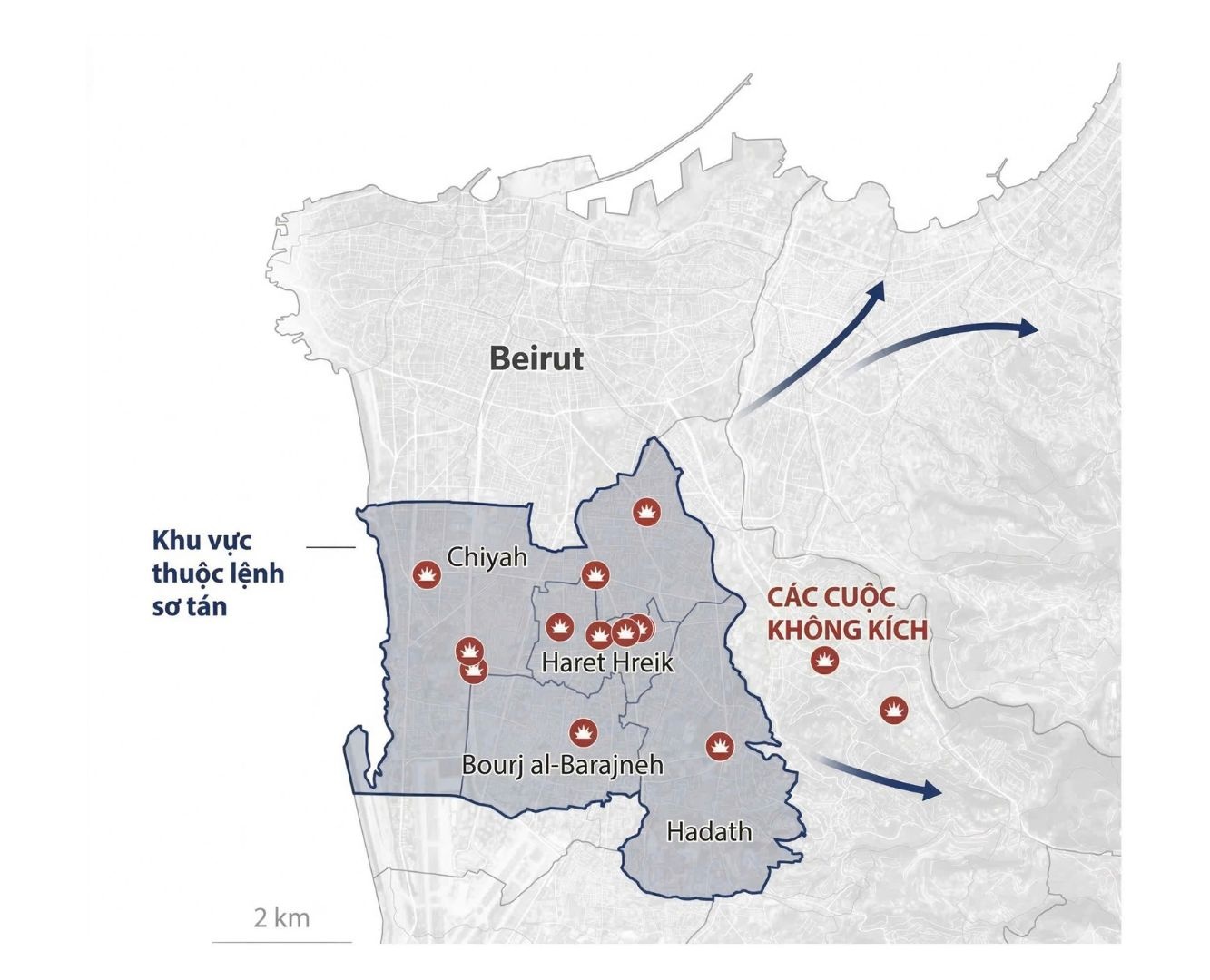 Một quan chức quân đội Israel cho biết nhiều đợt không kích đã nhằm vào khoảng 115 mục tiêu của Hezbollah tại vùng ngoại ô Beirut, bao gồm cả các tòa nhà dân cư mà Israel cáo buộc bị lực lượng này sử dụng làm trụ sở.