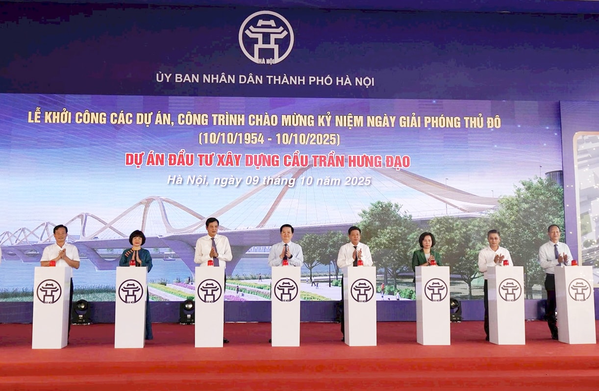 Lễ khởi công xây dựng cầu Trần Hưng Đạo Kỷ niệm 71 năm Ngày Giải phóng Thủ đô (10-10). Ảnh: Tuấn Lương