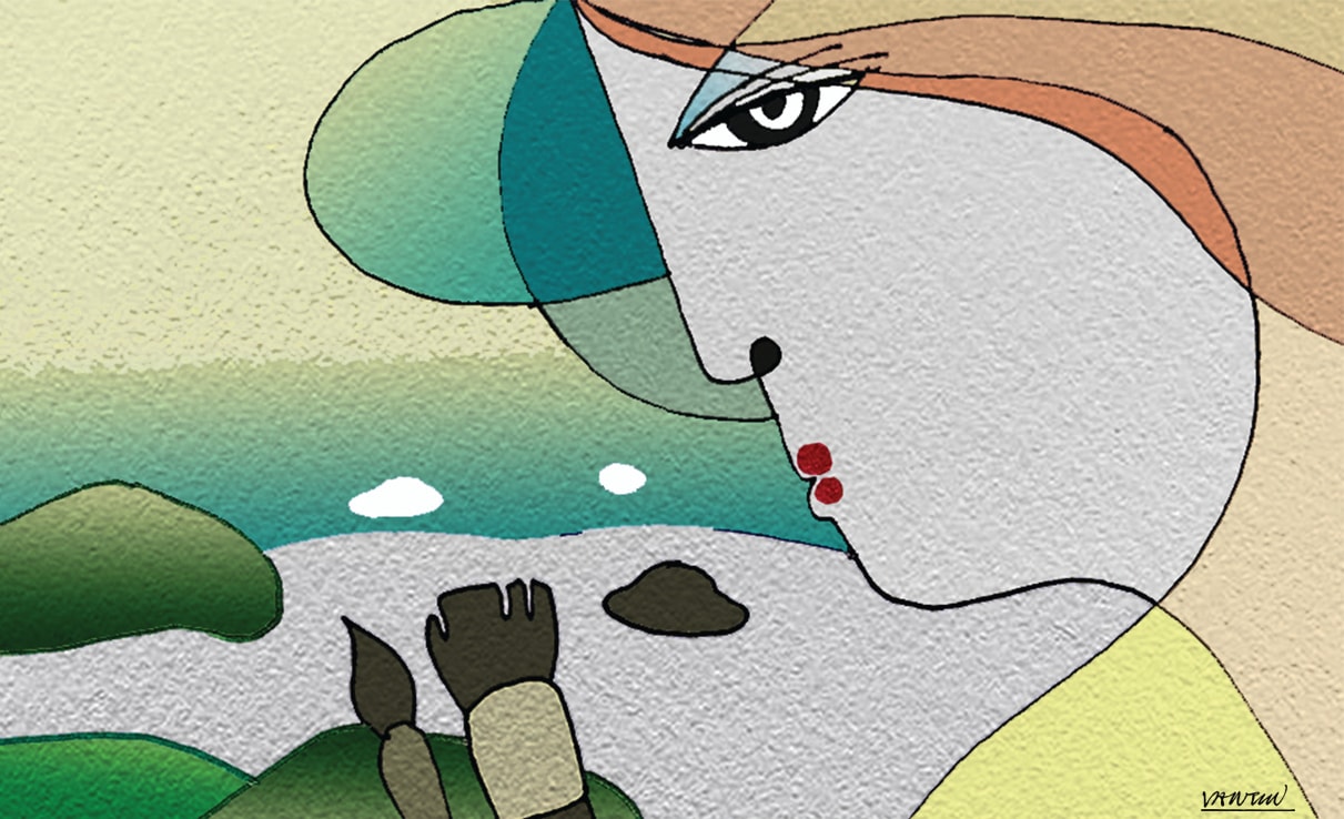 Ôi, Nguyên! Hồi đó, một lần ngồi vẽ trên bãi rêu, Nguyên đã vẽ tôi. Bức tranh ấy ban đầu vẽ ký họa bằng chì, sau thì Nguyên vẽ lại khổ lớn bằng sơn dầu.