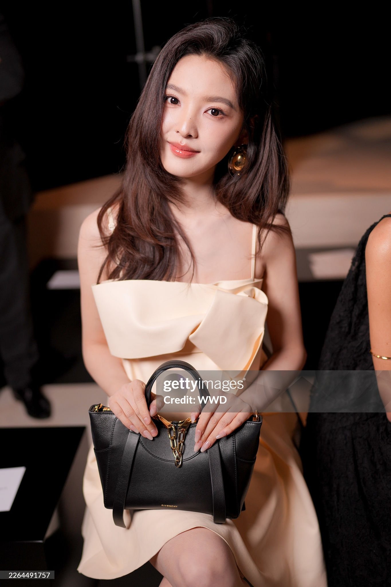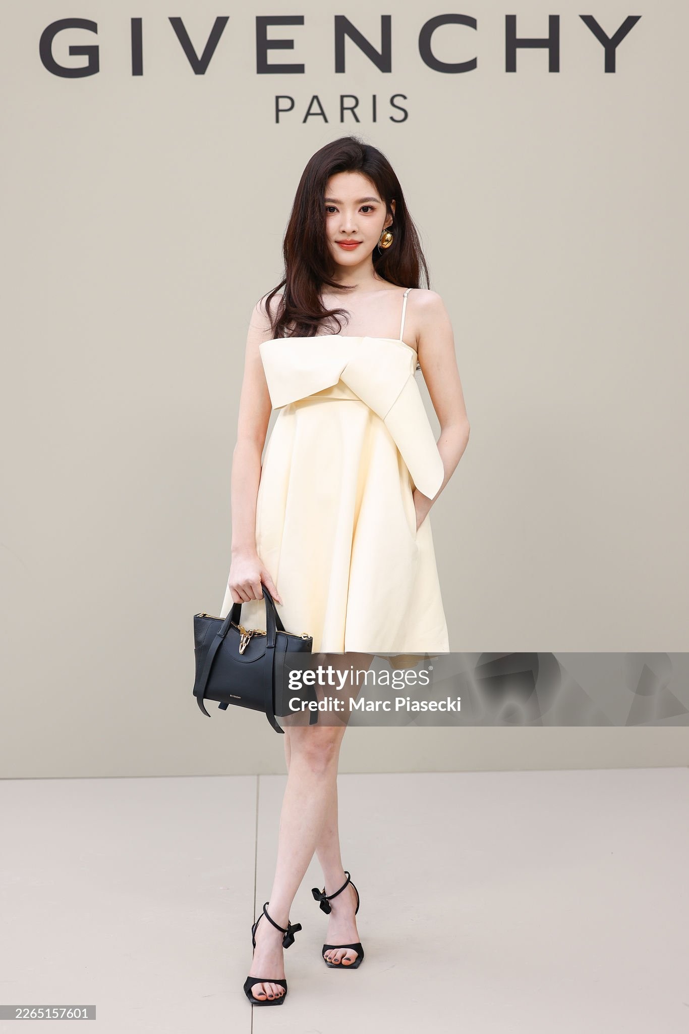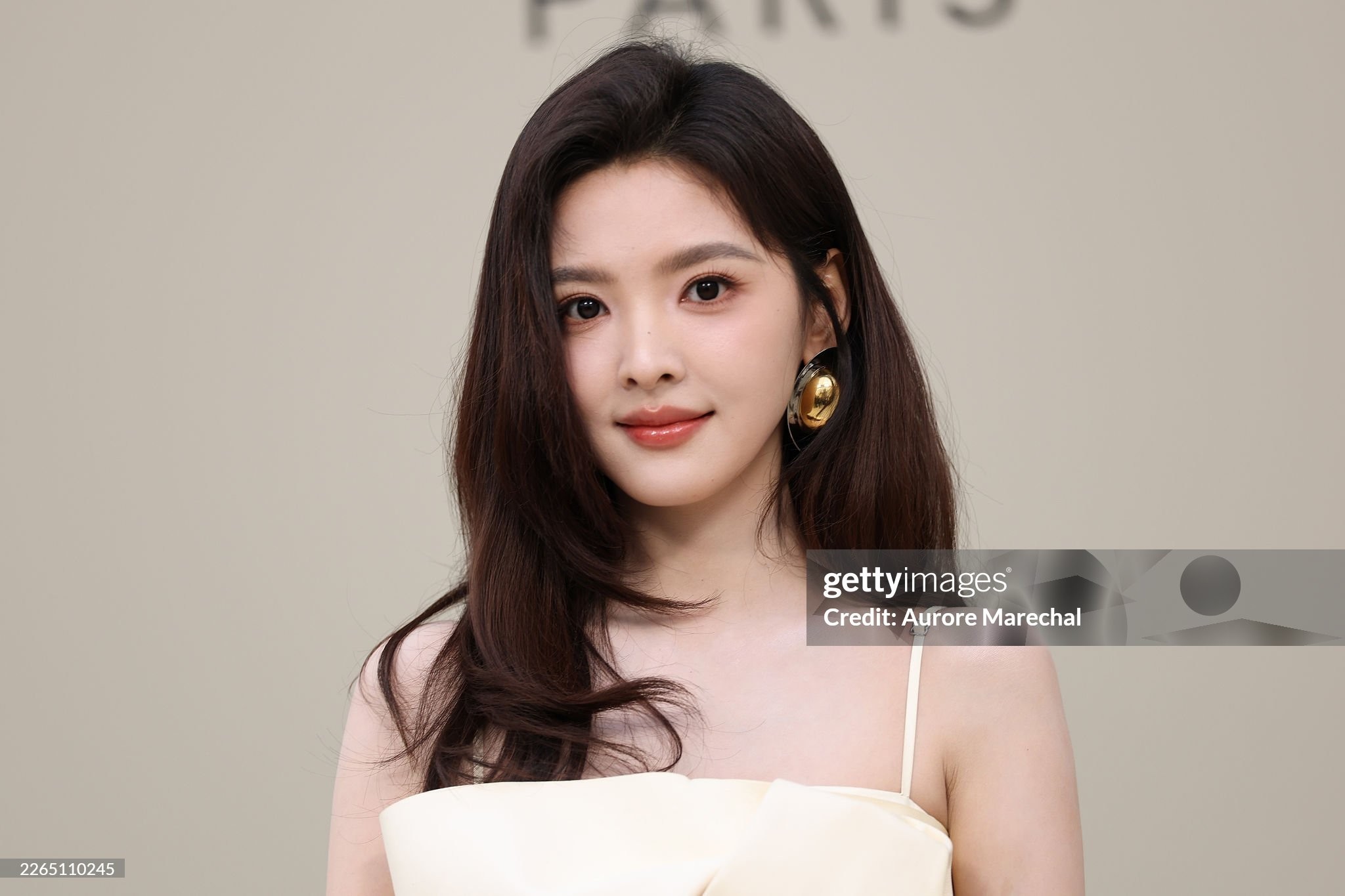 Trong loạt ảnh ghi lại tại sự kiện, Chương Nhược Nam diện thiết kế váy hai dây tông kem thanh lịch, kết hợp phụ kiện tối giản nhưng tinh tế.