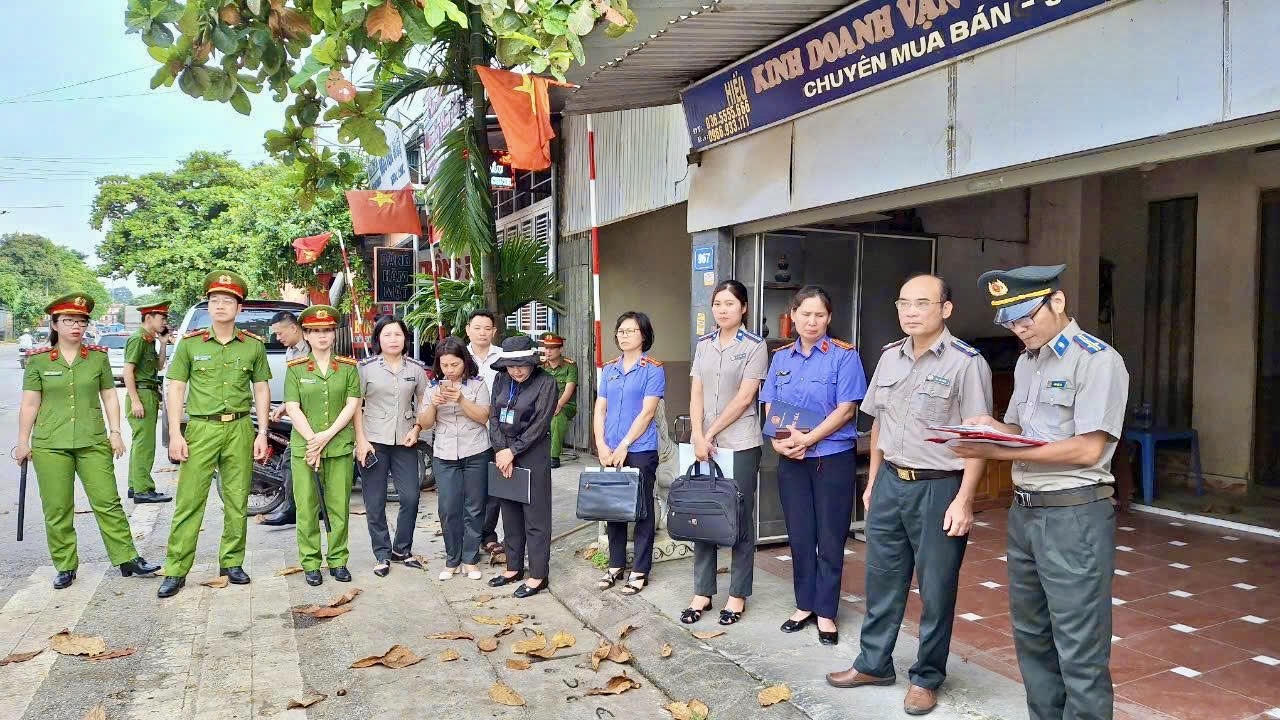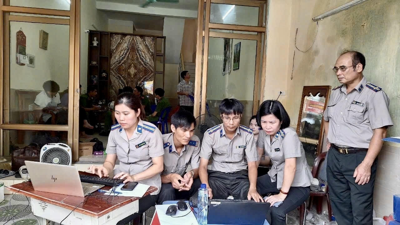 Bà Huệ cùng lực lượng chức năng tỉnh Tuyên Quang thực hiện nhiệm vụ kê biên. (Ảnh: Lê Hanh)