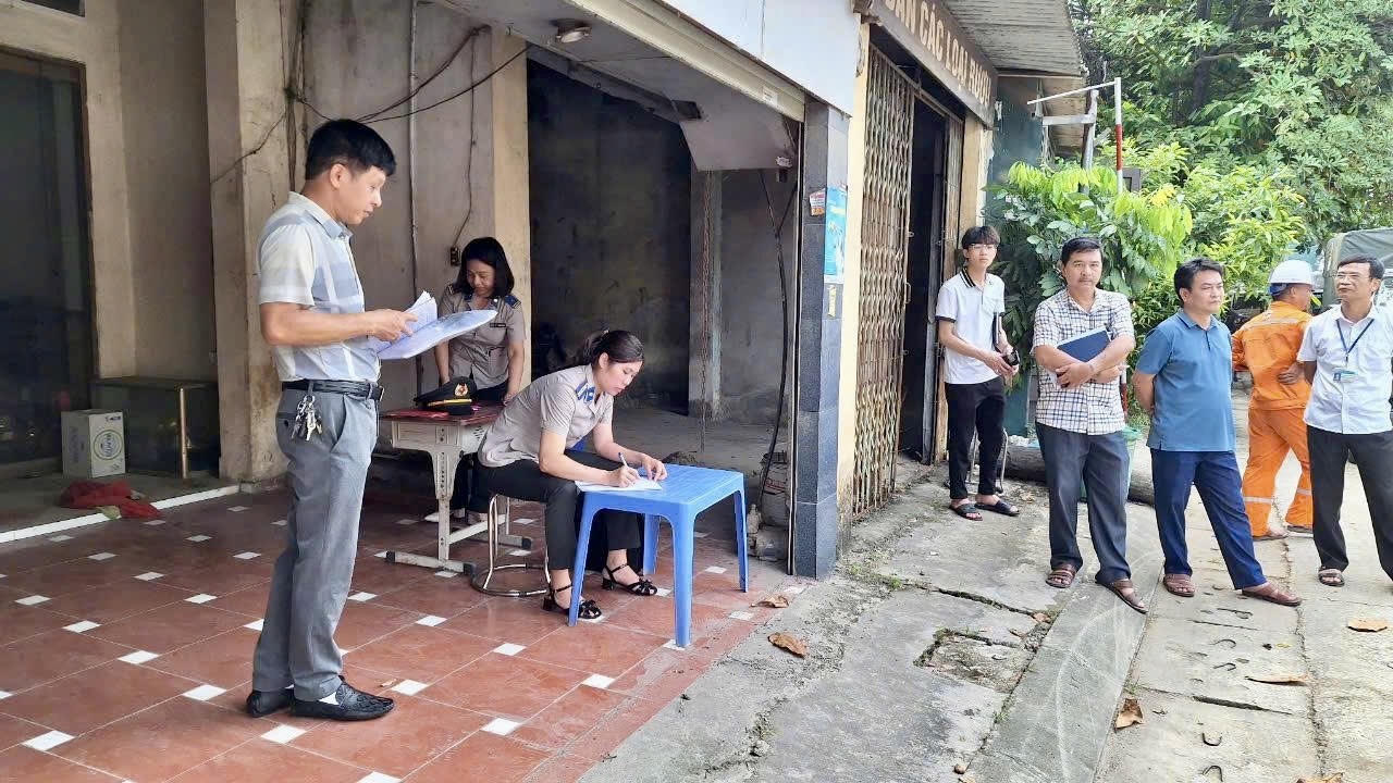 Bà Huệ cùng các đồng nghiệp thực hiện nhiệm vụ tại hiện trường vụ việc. (Ảnh: Lê Hanh)