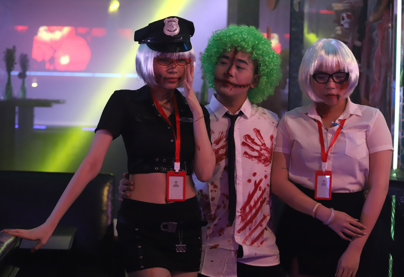 Những cửa hàng kinh doanh ăn uống nơi đây cũng tổ chức hát múa theo trend mùa Halloween.