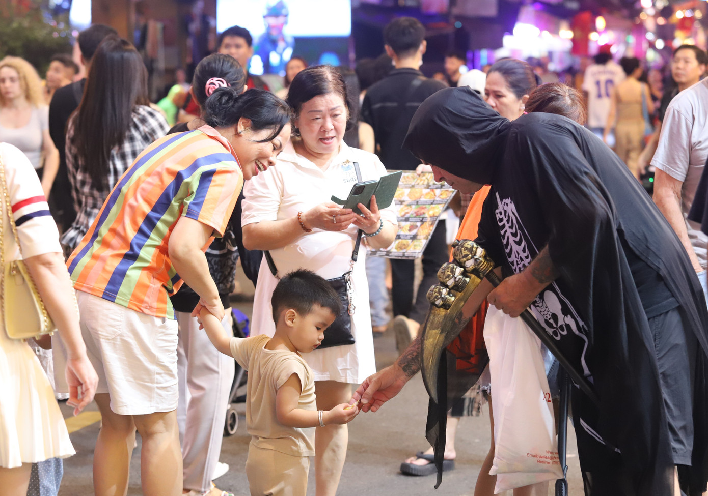 Tại Phố đi bộ Nguyễn Huệ (phường Sài Gòn) và Phố Tây Bùi Viện (phường Bến Thành) thu hút hàng ngàn người đổ về trong các bộ trang phục, phụ kiện hóa trang theo "phong cách ma".