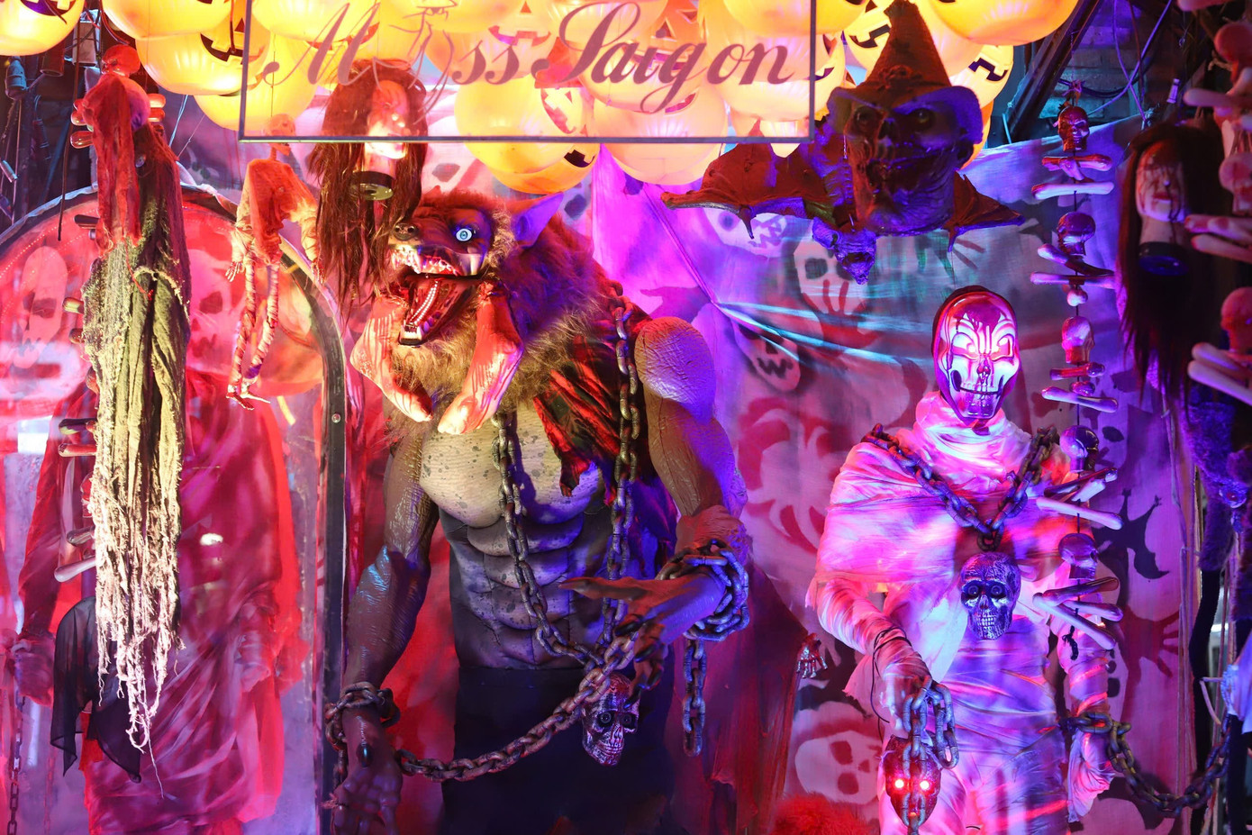 Hầu hết các hàng quán tại đây đều trang trí nổi bật theo chủ đề ma quái.
