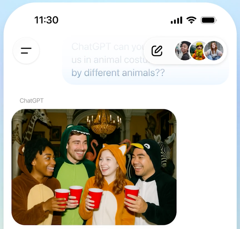 Open AI giới thiệu tính năng trò chuyện nhóm. Ảnh chụp màn hình