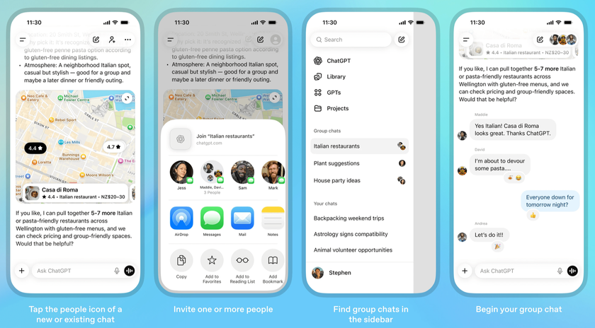 OpenAI chia sẻ: "Theo thời gian, chúng tôi kỳ vọng ChatGPT sẽ đóng vai trò tích cực hơn trong các cuộc trò chuyện nhóm thực tế, giúp mọi người lập kế hoạch, sáng tạo và cùng nhau hành động".