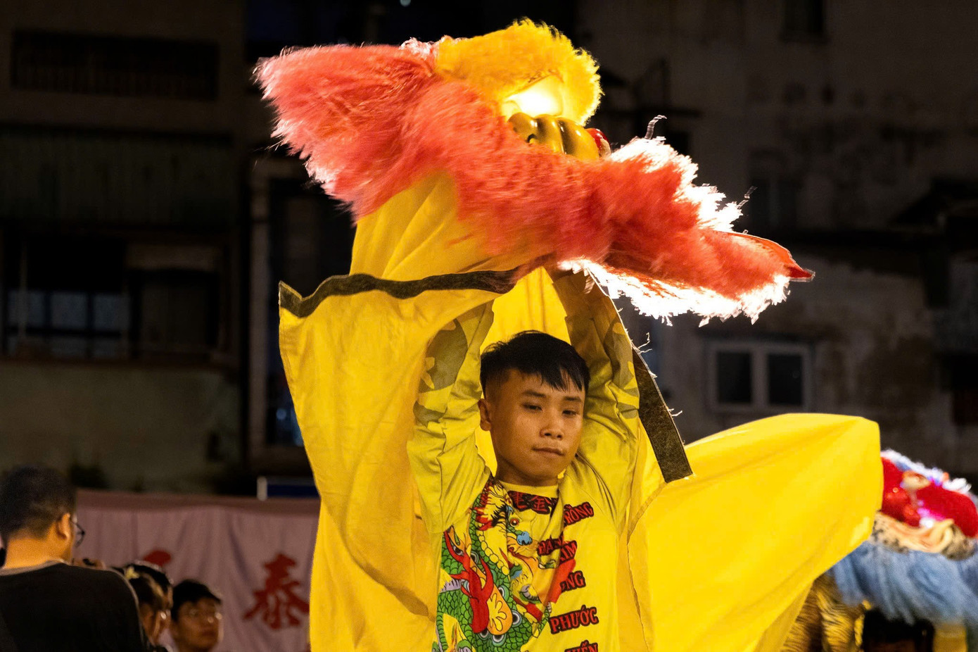 Thành viên đoàn múa điều khiển đầu rồng, góp phần làm không khí đêm Trung thu thêm náo nhiệt.