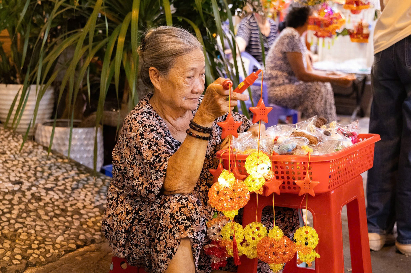 Góc bán lồng đèn giản dị của một cụ bà gợi nhắc về một lễ hội truyền thống.