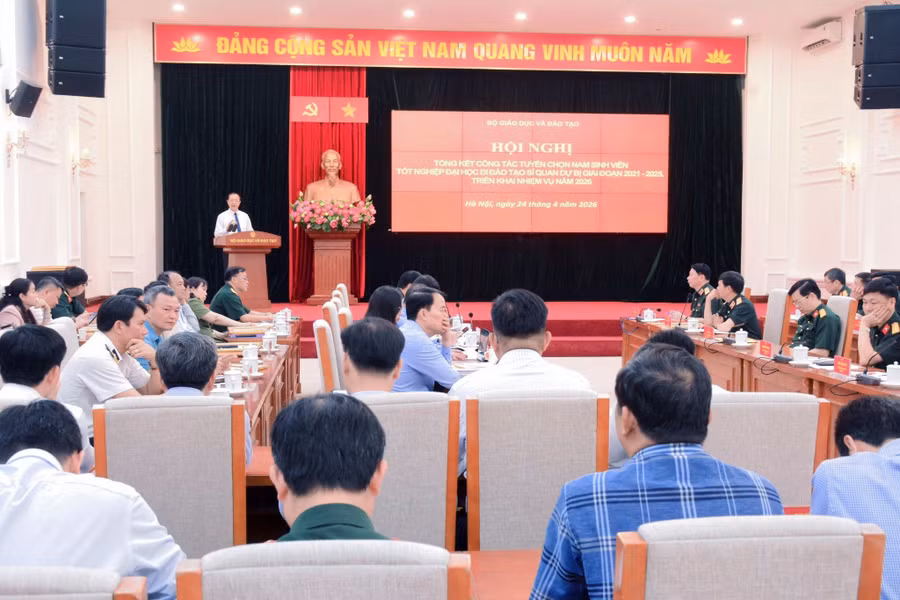 Sáng 24/4, Thứ trưởng Thường trực Bộ GD&ĐT Phạm Ngọc Thưởng dự Hội nghị tổng kết công tác tuyển chọn nam sinh viên tốt nghiệp đại học đi đào tạo sĩ quan dự bị giai đoạn 2021-2025 và giao chỉ tiêu nhiệm vụ đào tạo năm 2026. Tới dự có Thiếu tướng Trần Văn Nam - Phó Cục trưởng Cục Cán bộ, Bộ Tổng tham mưu Quân đội nhân dân Việt Nam cùng đại diện một số cơ sở giáo dục đại học, đơn vị quân đội.