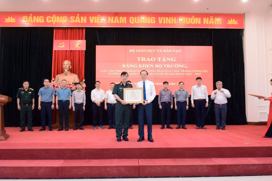 Cũng tại hội nghị, các đại biểu đã trao đổi và thảo luận những vấn đề cùng quan tâm để tháo gỡ khó khăn, bất cập trong triển khai nhiệm vụ được giao. Sau đó, lãnh đạo Bộ GD&ĐT tiến hành khen thưởng cho một số tập thể/cá nhân có thành tích xuất sắc trong công tác tuyển chọn nam sinh viên tốt nghiệp đại học đi đào tạo sĩ quan dự bị giai đoạn 2021-2025.