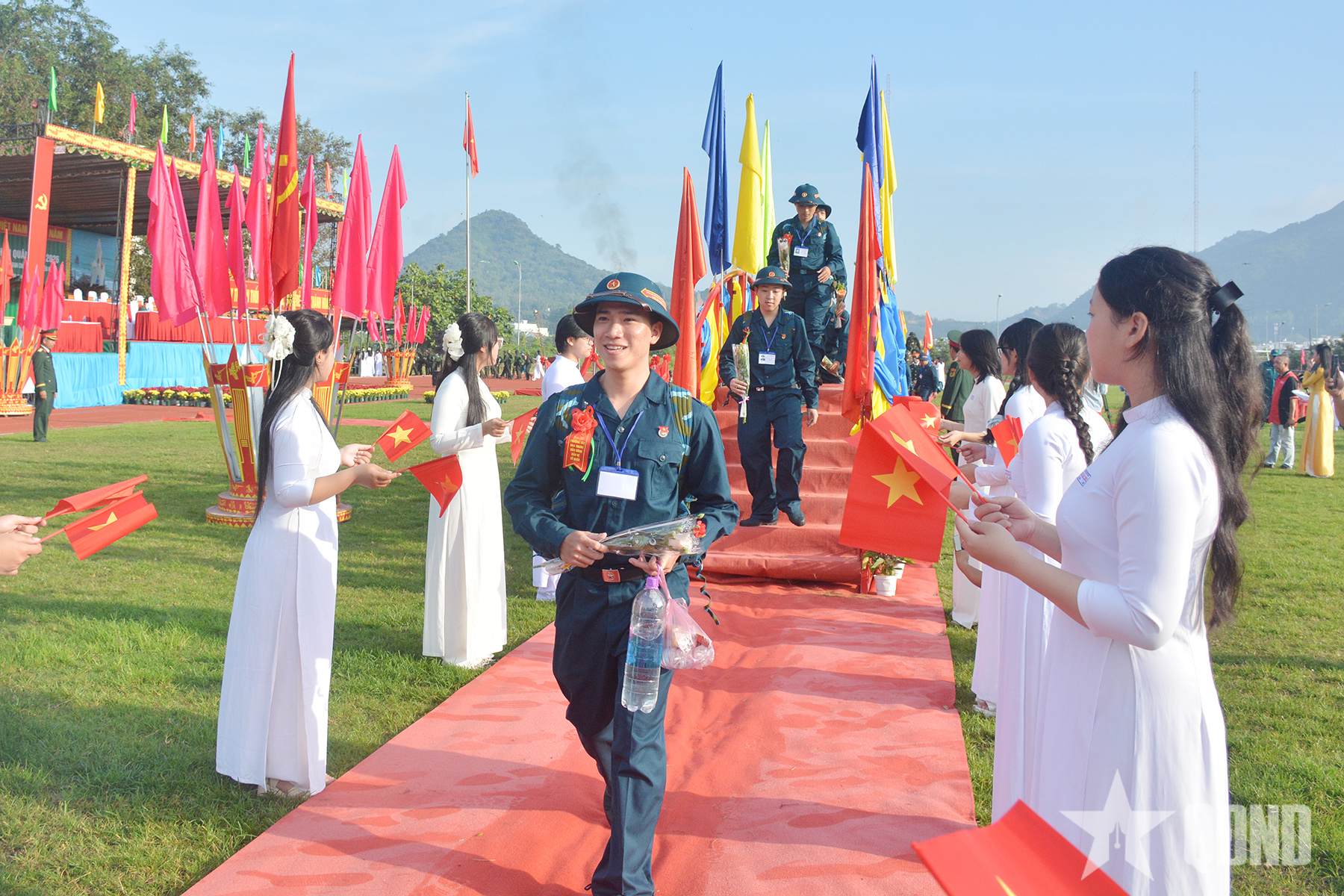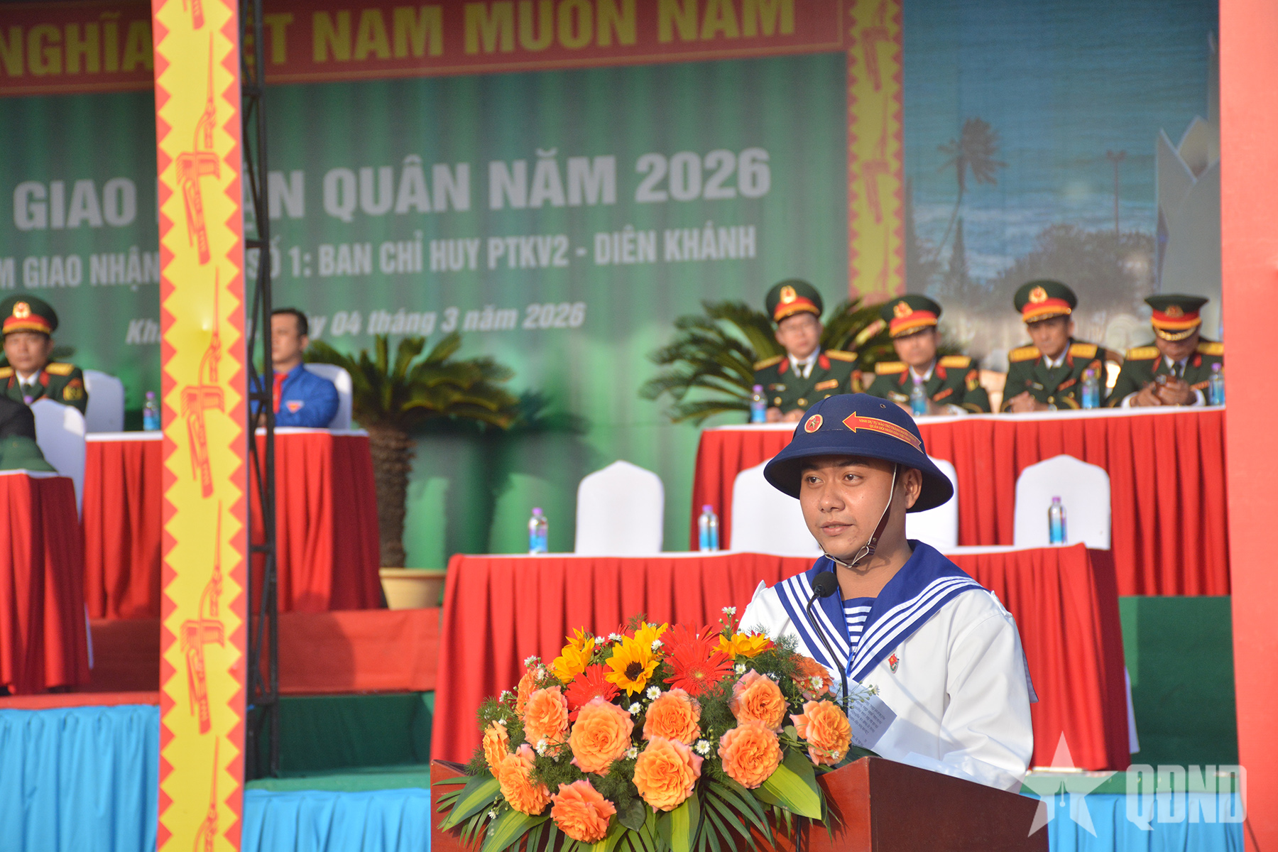 Phát biểu đại diện cho thanh niên tham gia nhập ngũ, thanh niên Nguyễn Đinh Ân, tổ dân phố Hà Ra 1, phường Bắc Nha Trang khẳng định sẽ ra sức học tập nâng cao trình độ chính trị, quân sự, văn hóa, khoa học, kỹ thuật và nghiệp vụ; thường xuyên tu dưỡng, rèn luyện phẩm chất đạo đức của người quân nhân cách mạng, chủ động khắc phục khó khăn, phấn đấu hoàn thành tốt mọi nhiệm vụ được giao.