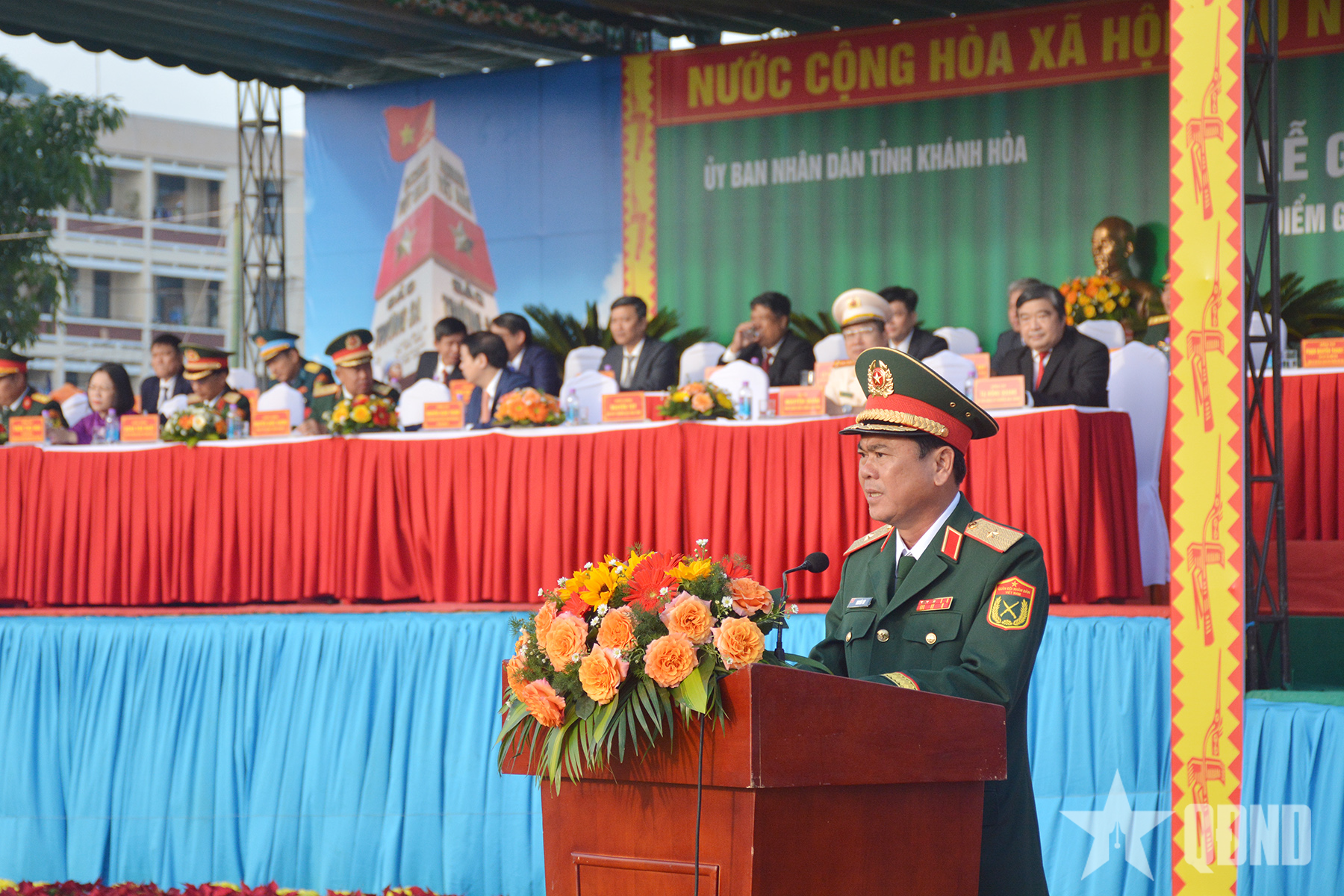 Thiếu tướng Nguyễn Túy, Chỉ huy trưởng Bộ CHQS tỉnh Khánh Hòa phát biểu động viên thanh niên.