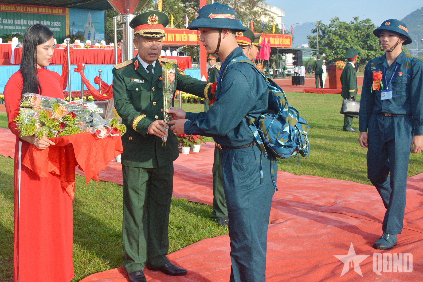 Phát biểu tại lễ giao nhận quân, Thiếu tướng Nguyễn Túy chúc mừng các gia đình có con em trúng tuyển đợt này và chào mừng các thanh niên trúng tuyển lên đường nhập ngũ năm 2026.