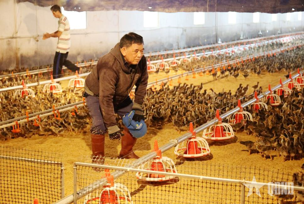 Cựu chiến binh Lê Quang Dưỡng chăm sóc đàn gà giống.