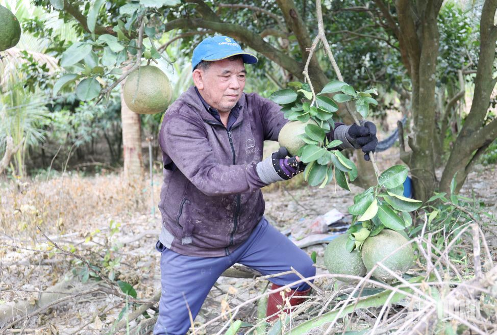 CCB Lê Quang Dưỡng bên gốc bưởi da xanh.