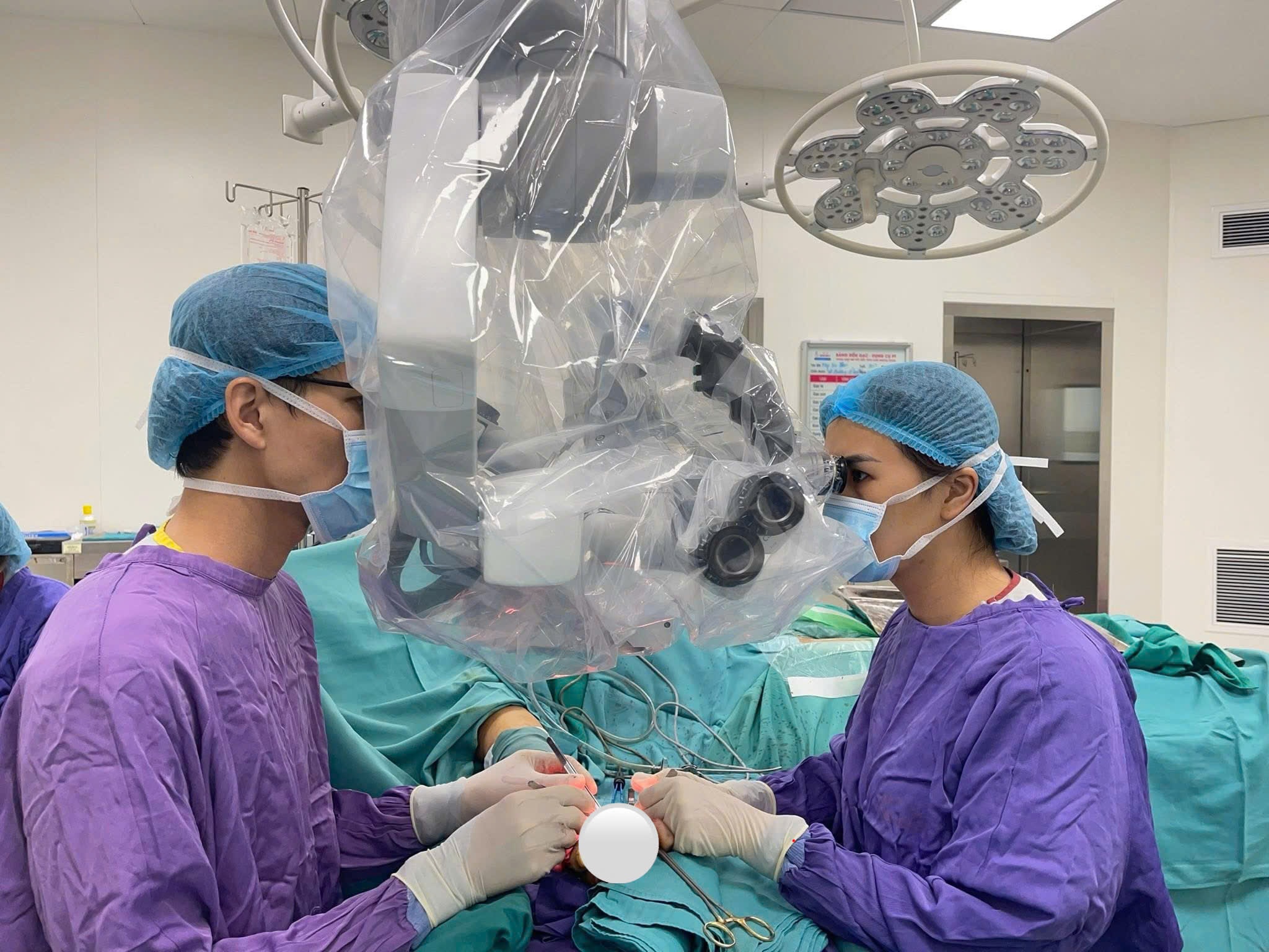 Bác sĩ thực hiện phẫu thuật vi phẫu tạo hình bảo tồn ngón tay cho người bệnh. Ảnh: BVCC