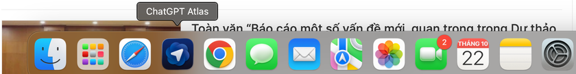 ChatGPT Atlas hiển thị trên thanh công cụ của Macbook.
