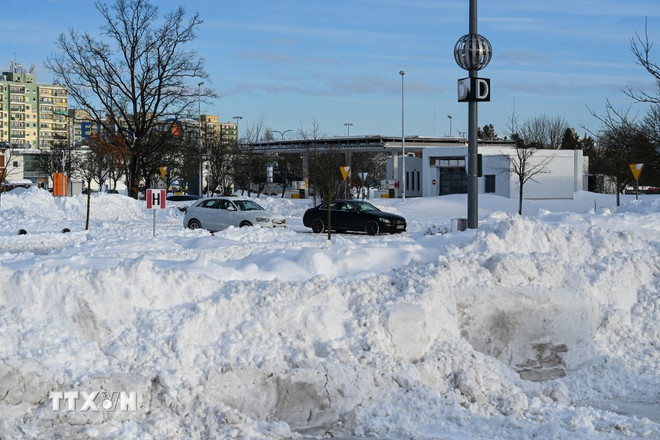 Tuyết phủ dày tại Slupsk, Ba Lan ngày 5/1/2025. (Ảnh: PAP/TTXVN)