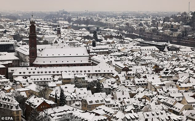 Tuyết phủ trắng các mái nhà của khu phố cổ ở Heidelberg, Đức. Ảnh: EPA.