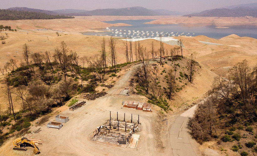 Cảnh khô hạn do nắng nóng kéo dài tại một hồ nước ở California, Mỹ. (Ảnh: AFP/TTXVN)
