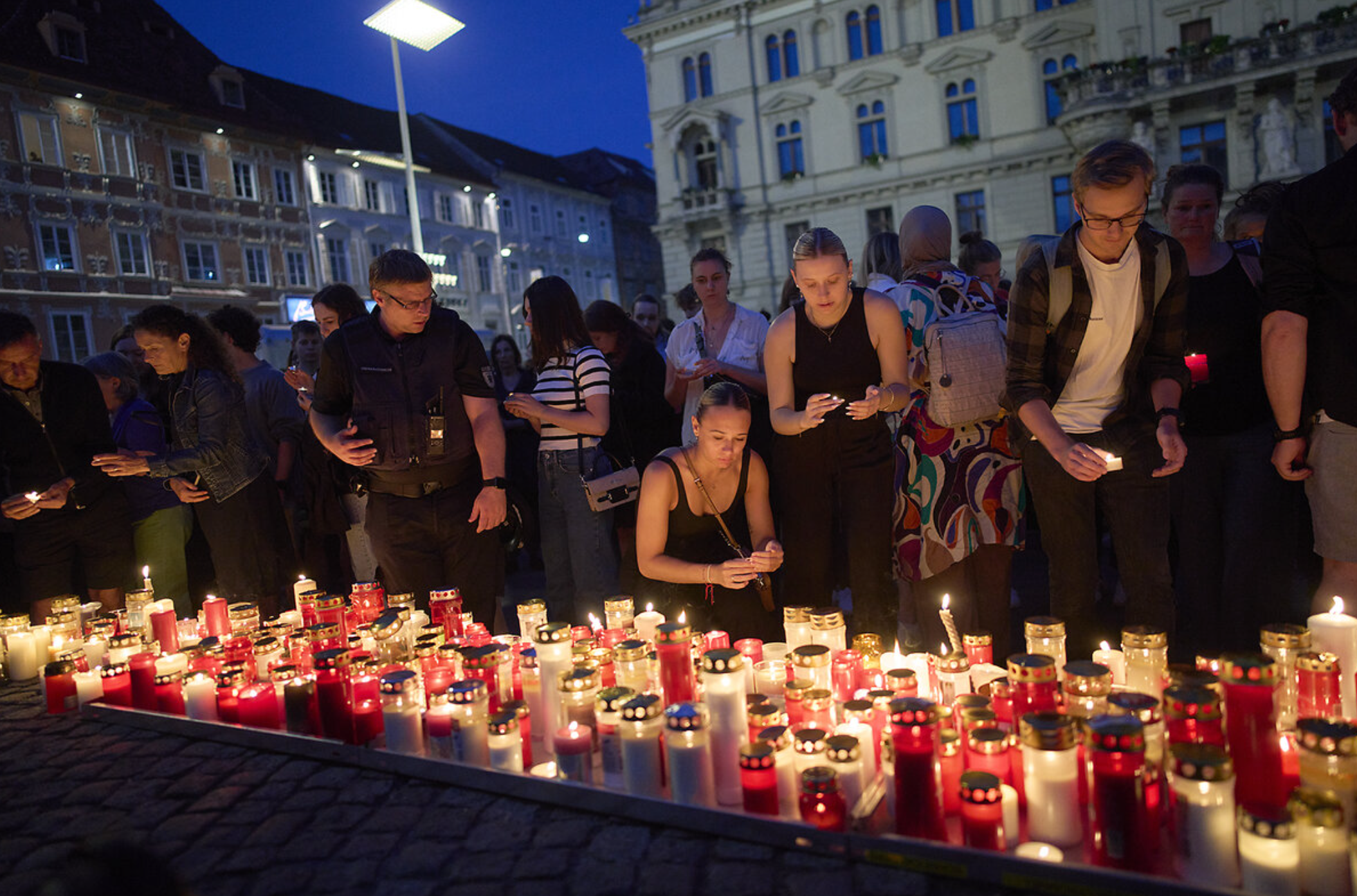 Người dân thắp nến tưởng niệm nạn nhân trong vụ xả súng trường học khiến 10 người thiệt mạng ở Graz, Áo. Ảnh: AP