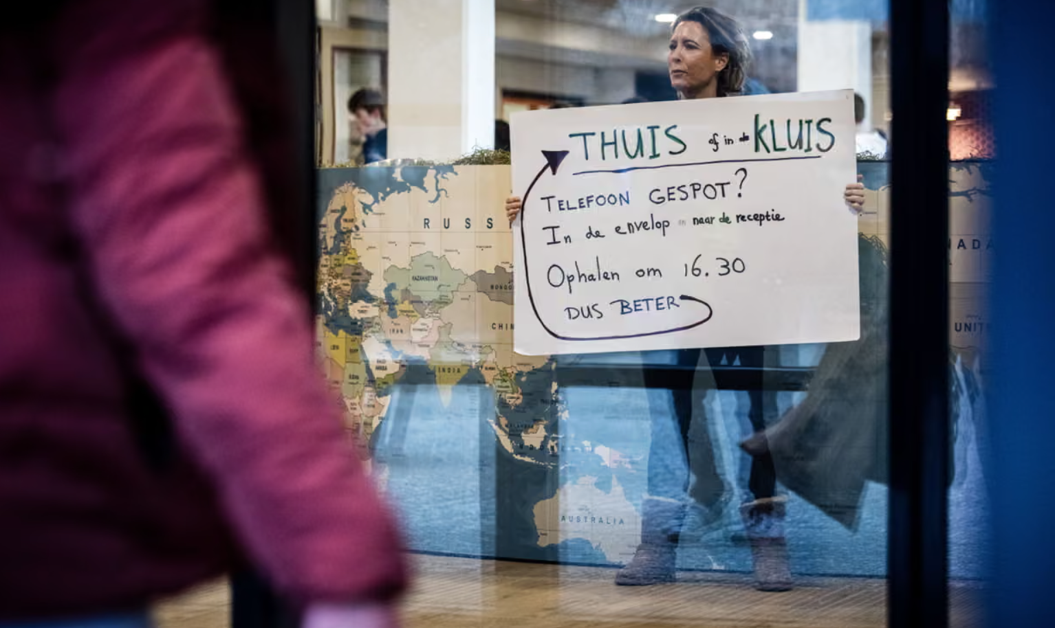 Một tấm áp phích ở một trường học Hà Lan nhắc nhở học sinh để điện thoại ở nhà hoặc trong tủ khóa. Ảnh: Shutterstock
