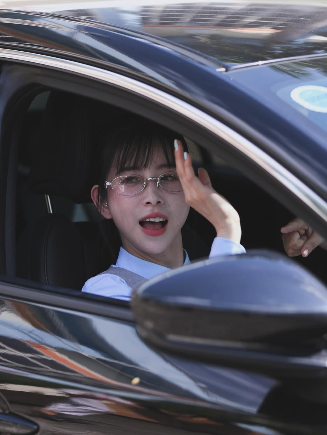 Mái tóc buộc gọn phía sau kết hợp với kính gọng mảnh tạo nên hình ảnh trí thức, sắc sảo – một Châu Tuyết Vân rất khác so với hình ảnh quen thuộc trên thảm đấu hay sân khấu truyền hình.