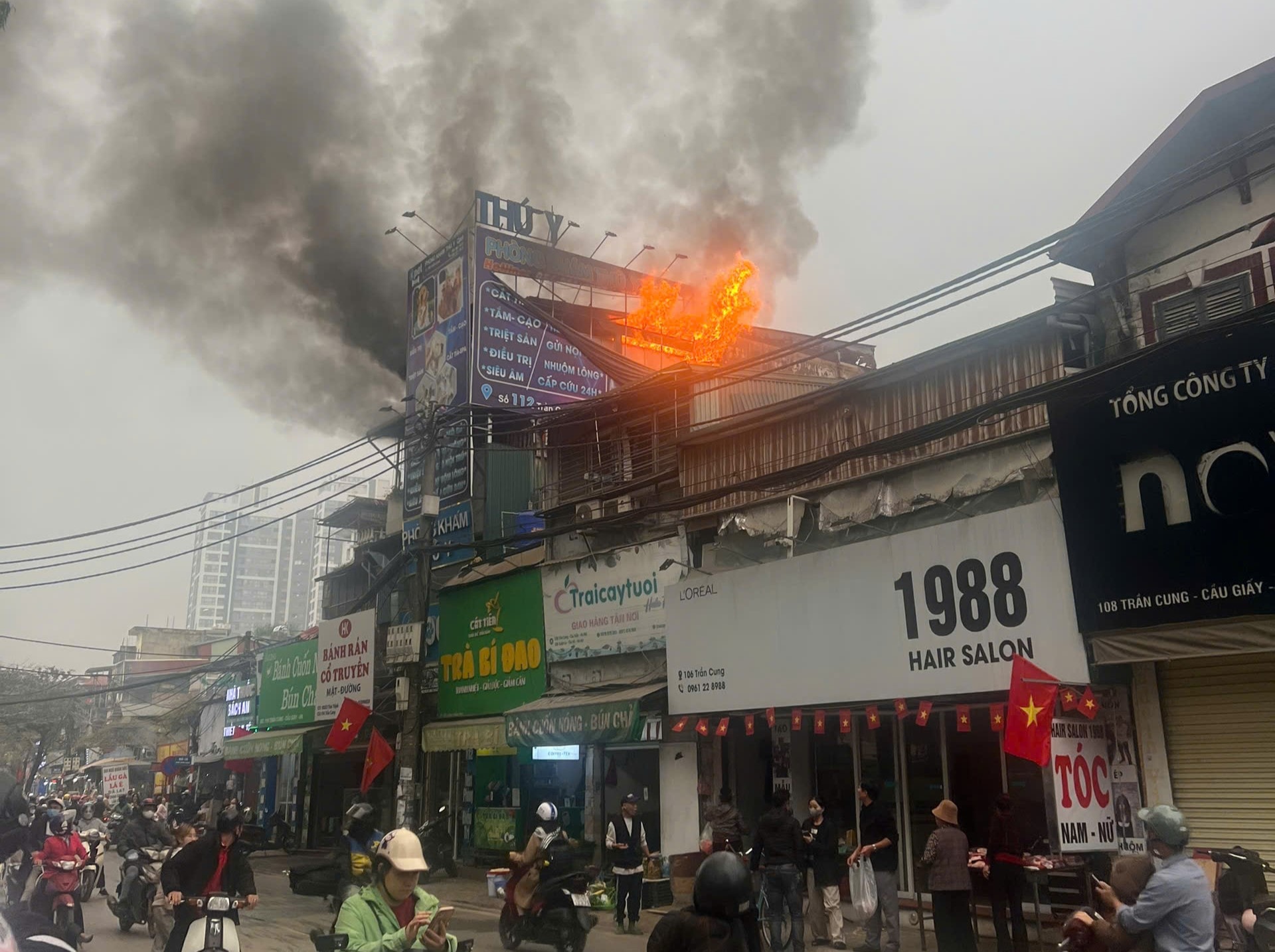 Thông tin ban đầu cho biết, vụ cháy xảy ra tại biển quảng cáo tại tầng 3 nhà dân có địa chỉ ở số 112 đường Trần Cung. Ngọn lửa gặp chất dễ cháy đã bùng phát nhanh khiến người dân hoảng hốt.