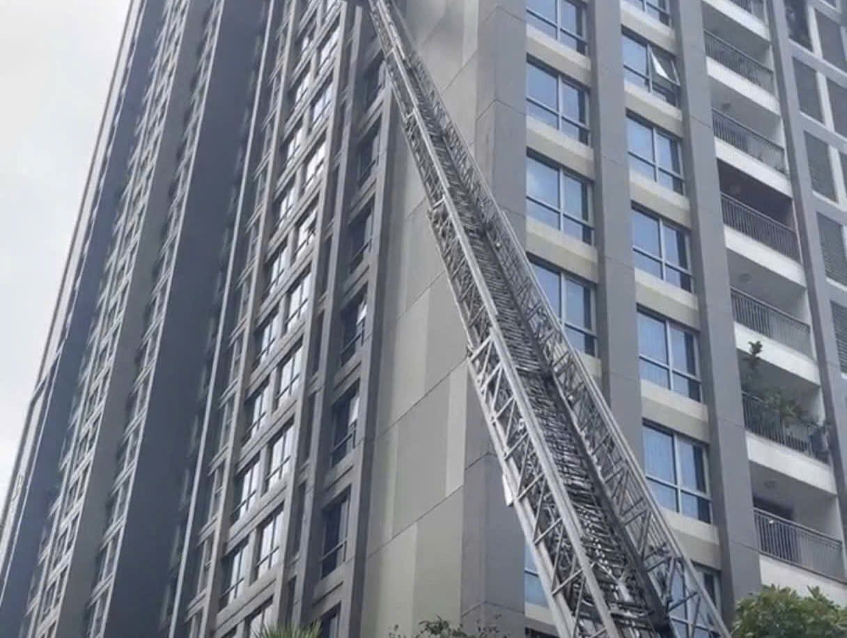 Trước đó, hơn 13 giờ chiều 11/4, người dân phát hiện khói đen kèm lửa bất ngờ bùng phát tại khu vực logia của một căn hộ ở tầng 10, tòa L6, thuộc khu chung cư cao cấp trên đường Nguyễn Hữu Cảnh, phường Thạnh Mỹ Tây, TP.HCM.