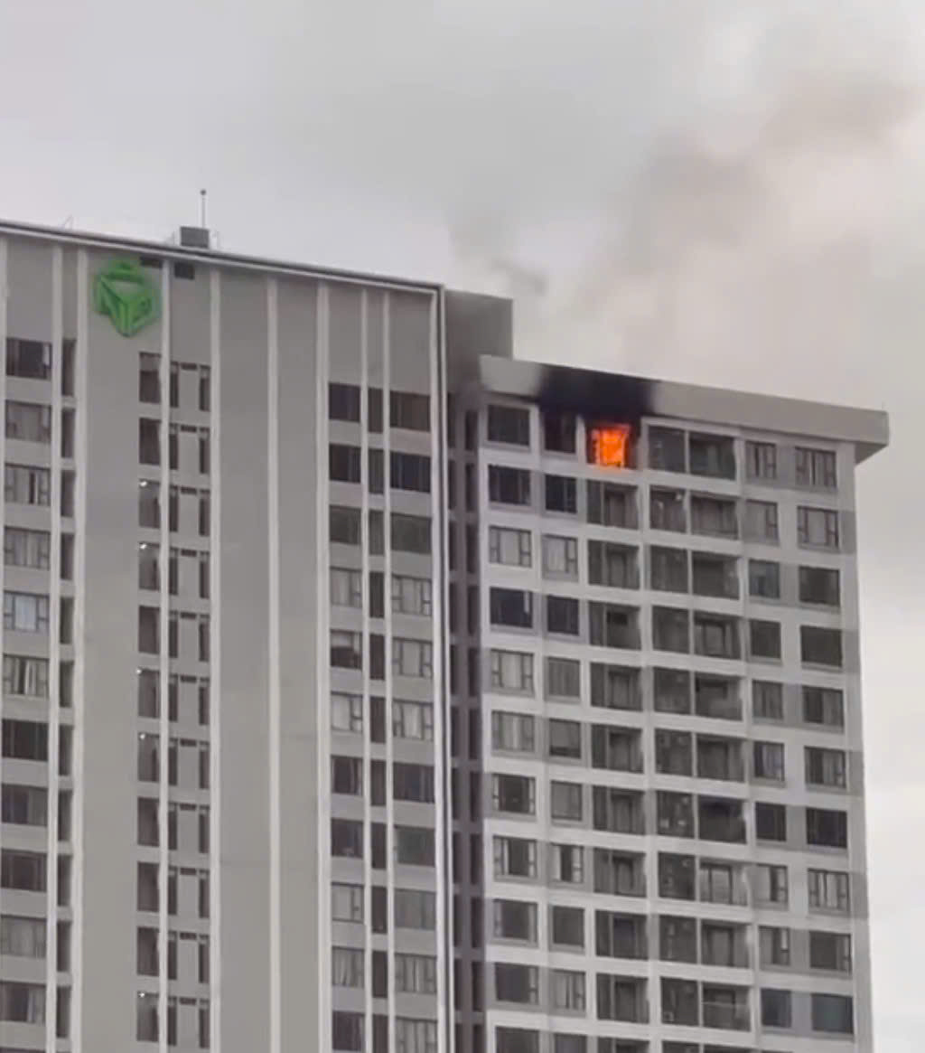 Ngọn lửa bốc lên ngùn ngụt tại một căn hộ tầng 27